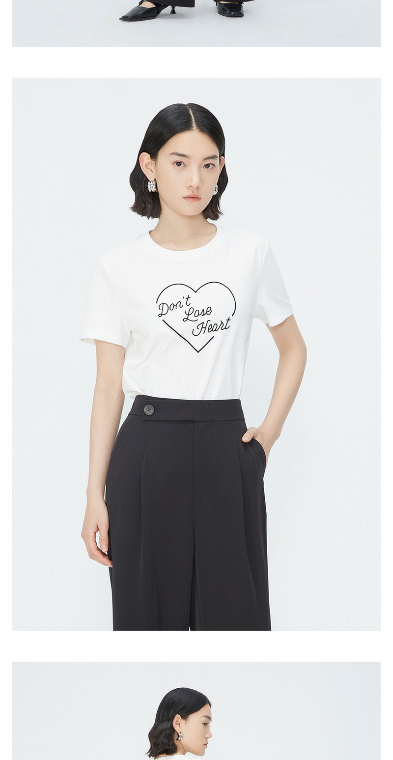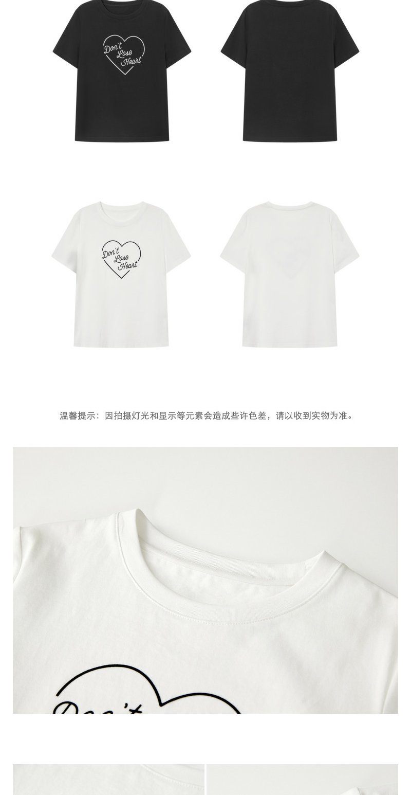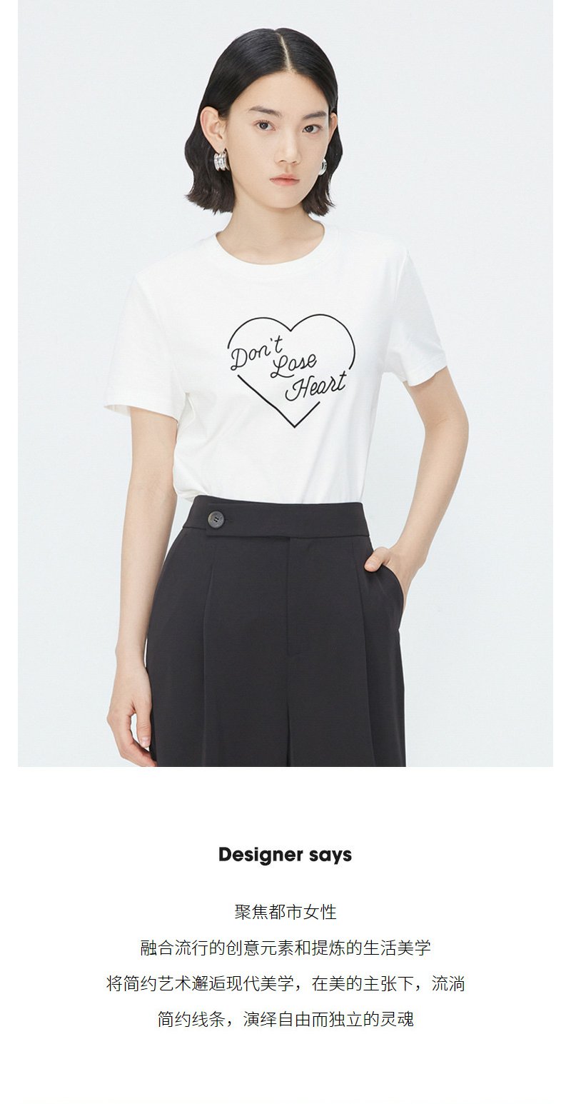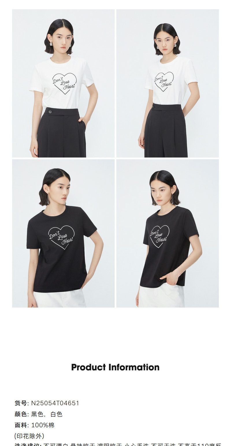 NEELLY纳俪商场同款夏季新款纯棉T恤女简约爱心印花宽松通勤上衣N25054T04651