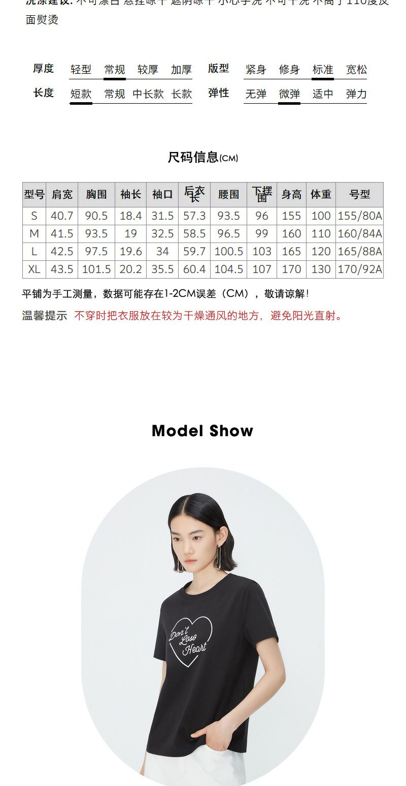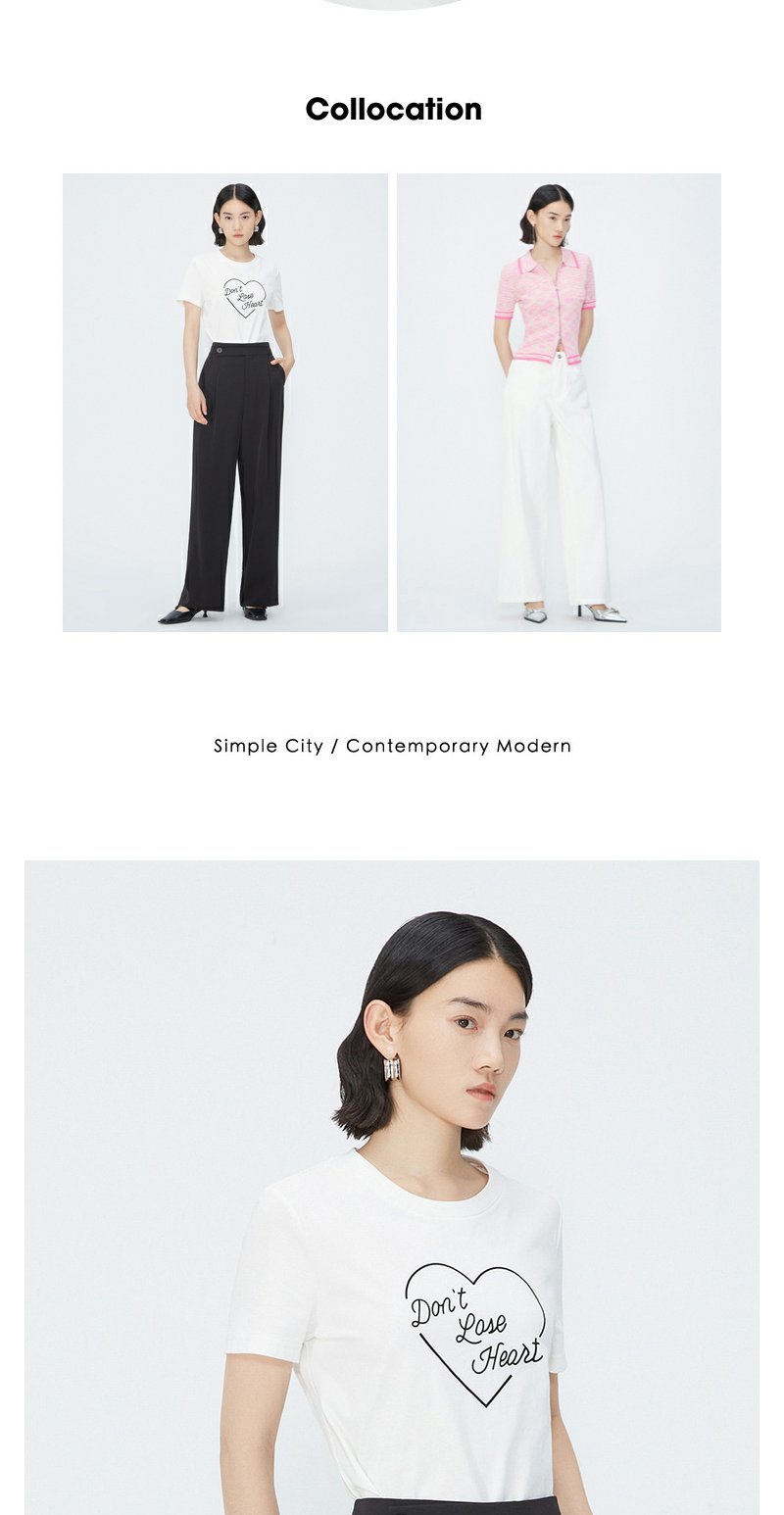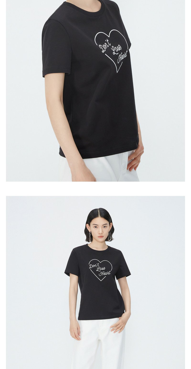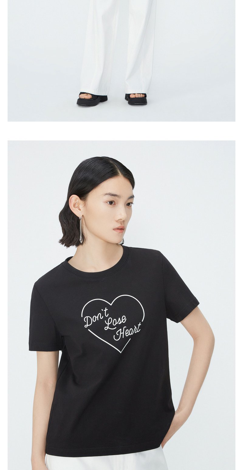 NEELLY纳俪商场同款夏季新款纯棉T恤女简约爱心印花宽松通勤上衣N25054T04651