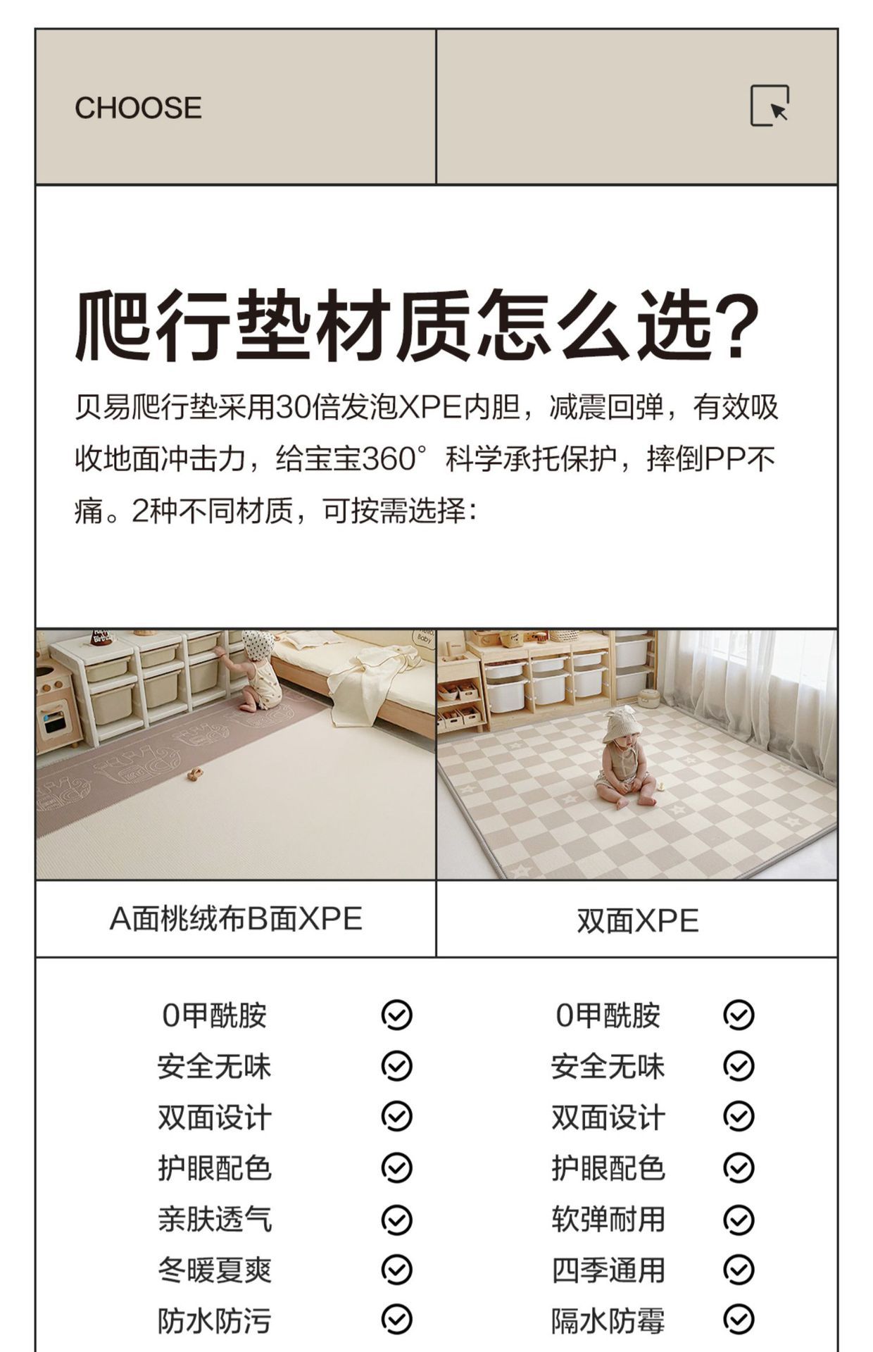 【云优选】贝易双面xpe卷筒爬行垫宝宝加厚婴儿客厅儿童游戏地垫爬爬垫新款(无质量问题不支持7天无理由退货,介意慎拍)