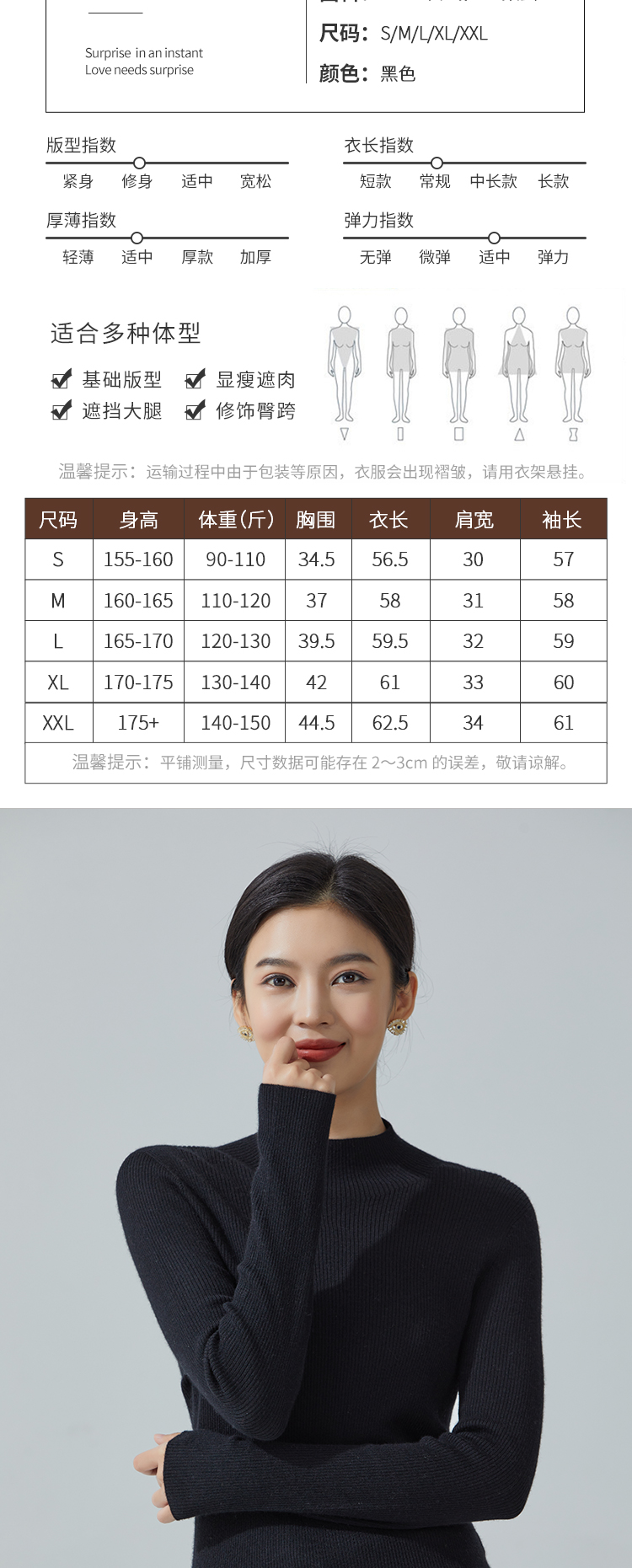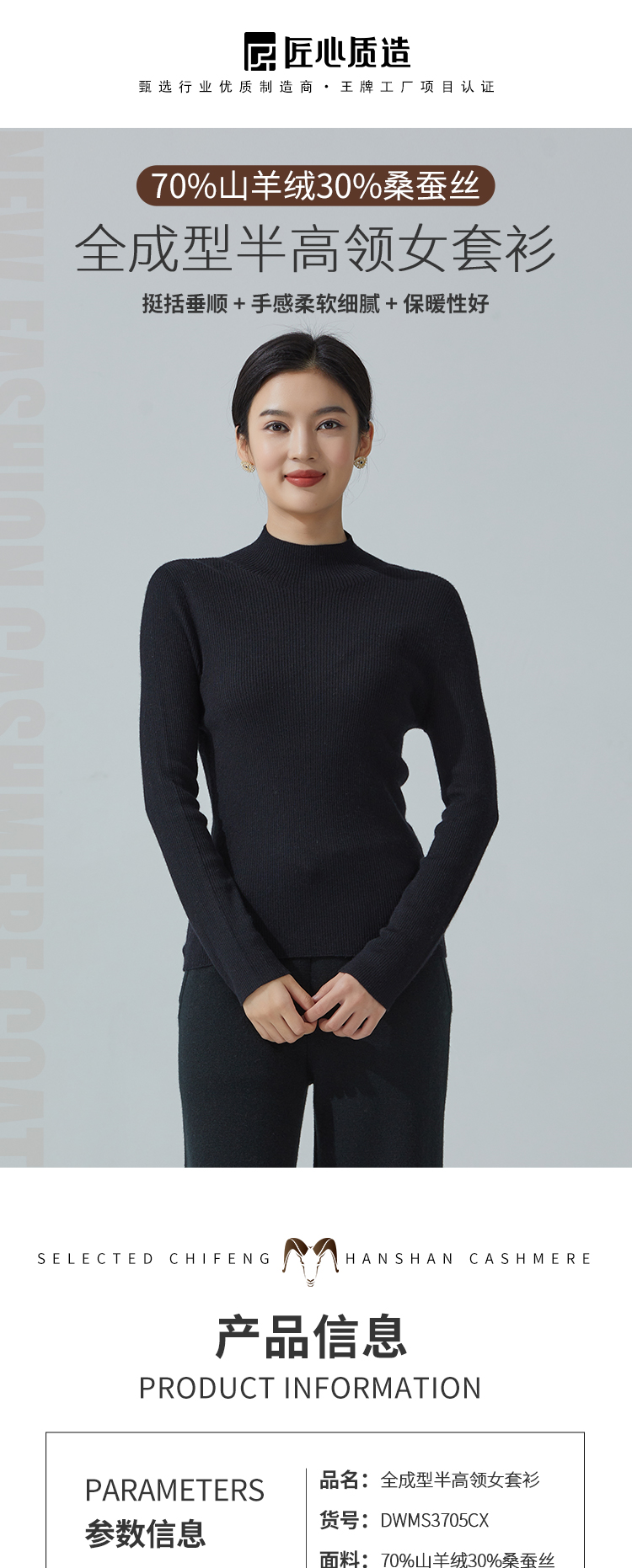 东黎 • 丝绒女士春秋精纺全成型半高领打底套衫 3705