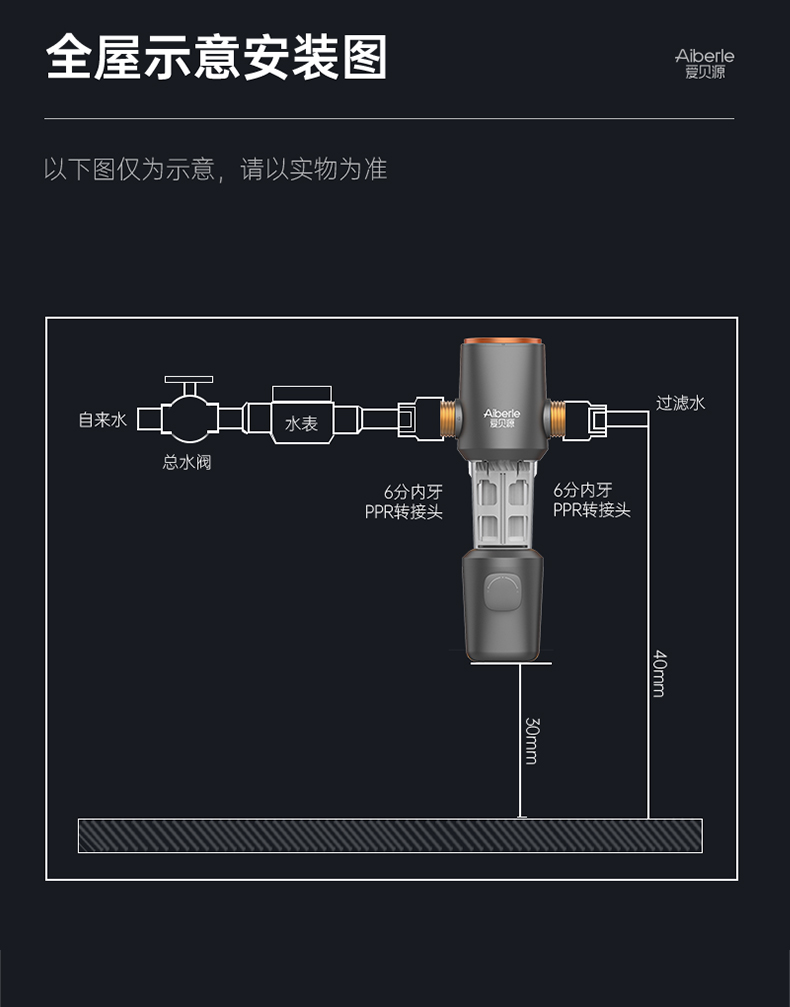 爱贝源前置过滤器自动反冲洗家用中央净水机全屋自来水过滤净水器