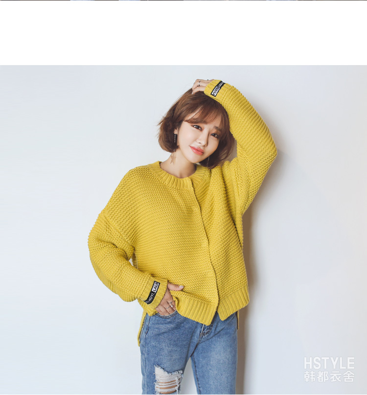 韩都衣舍2018秋装新款女装上衣韩版宽松黄色毛衣开衫女潮NP6853琮