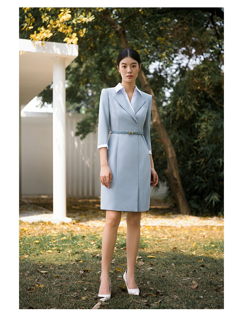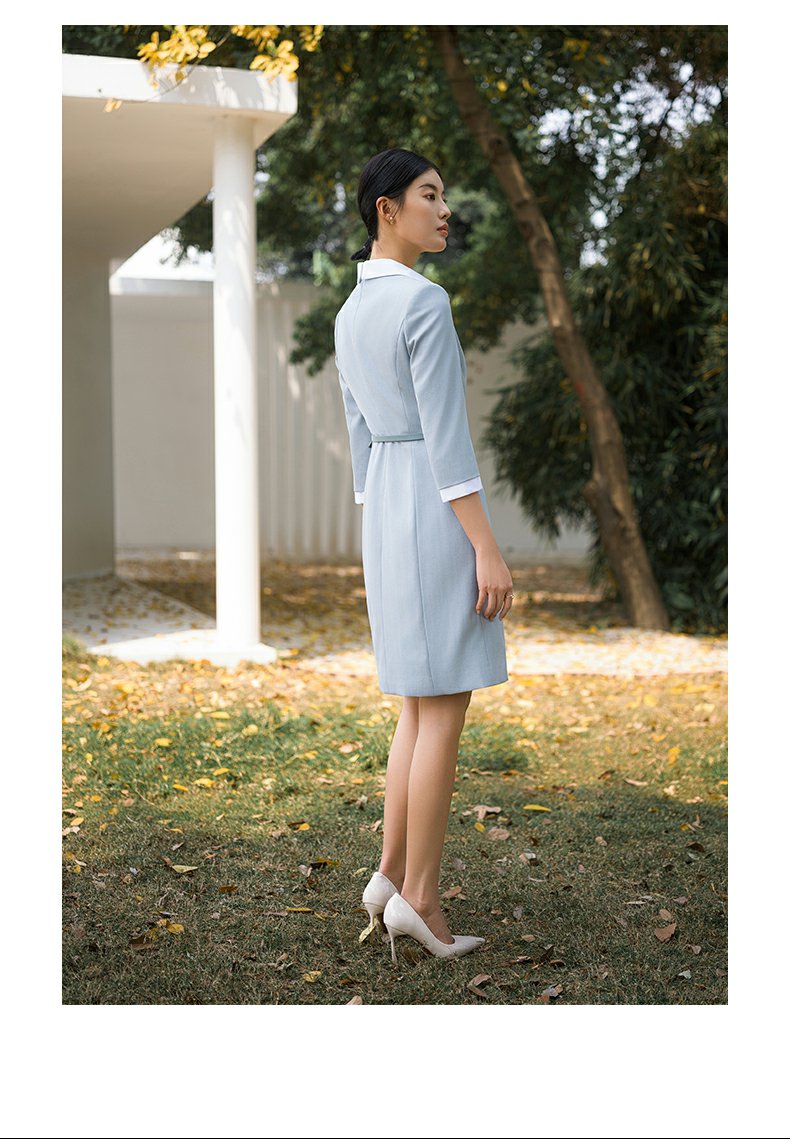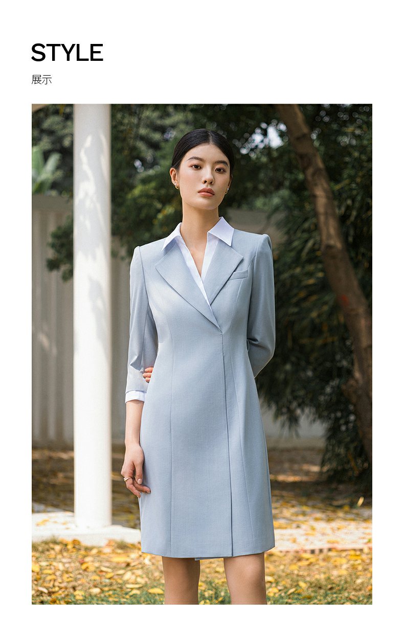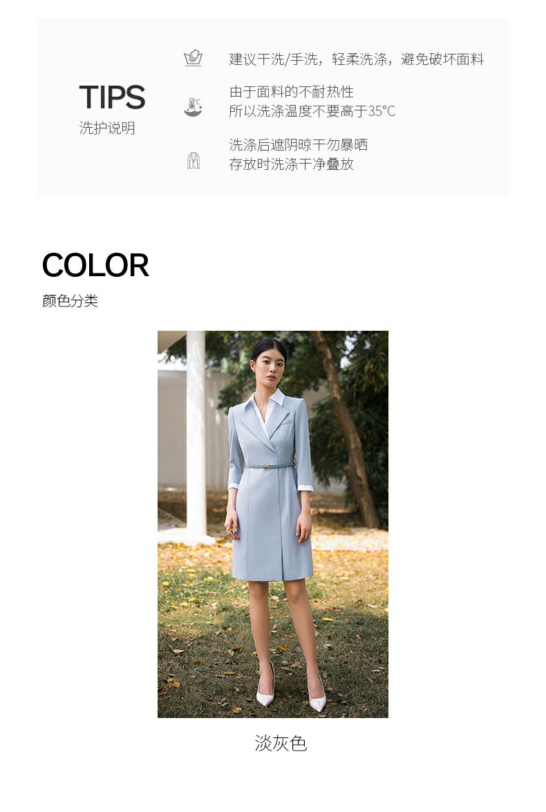 IWY/七分袖绑带蓝色连衣裙女春夏新款白领上班西装裙气质显白套裙Q14233