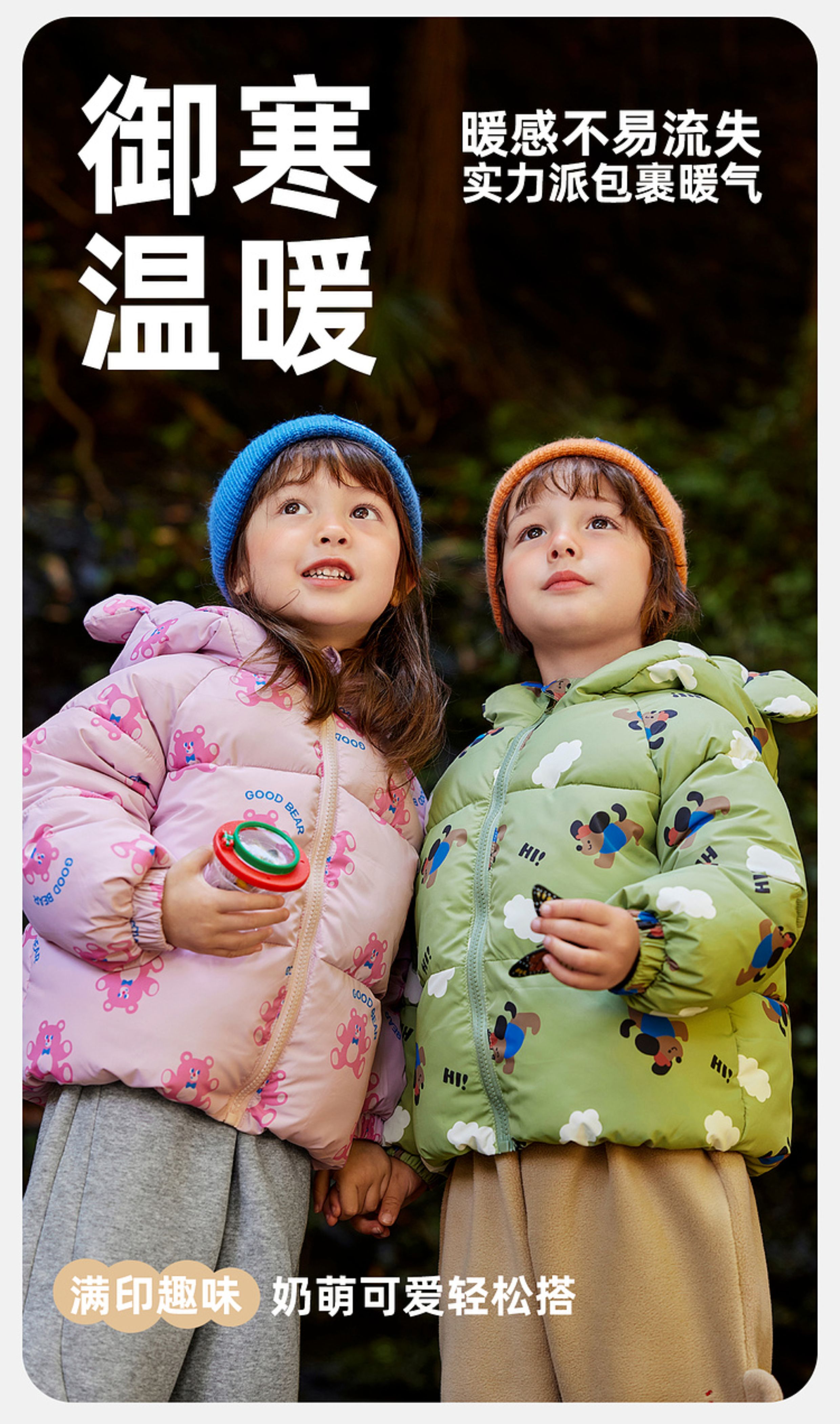 嘟嘟家宝宝棉服连帽外套冬季加厚保暖棉衣可爱儿童满印卡通棉袄潮
