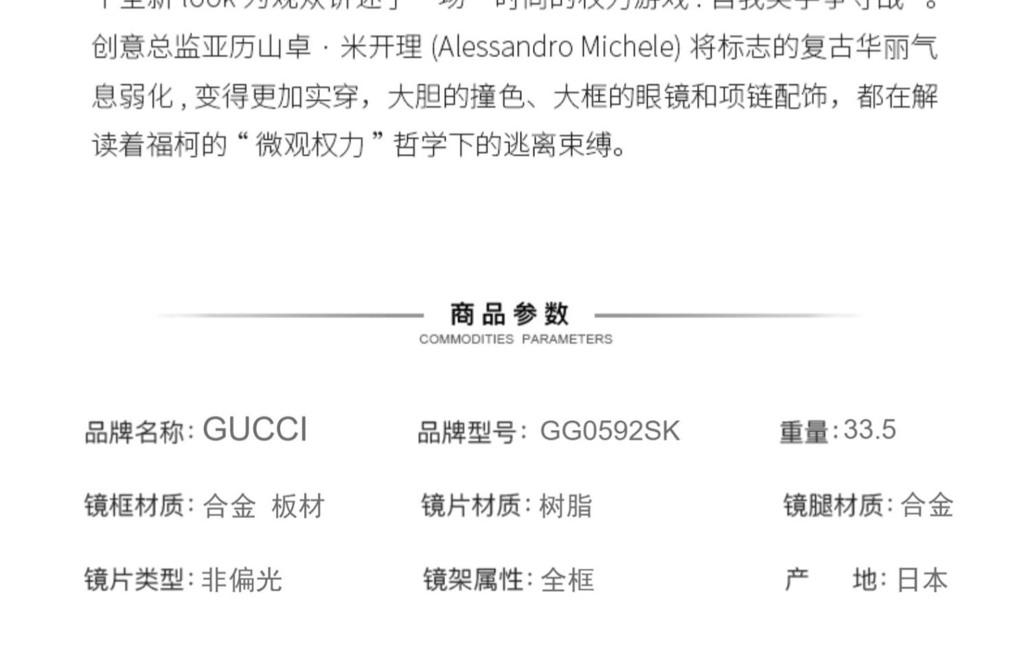 Gucci/古驰墨镜人字形节状蛇纹方形大框遮脸潮太阳眼镜女GG0592SK
