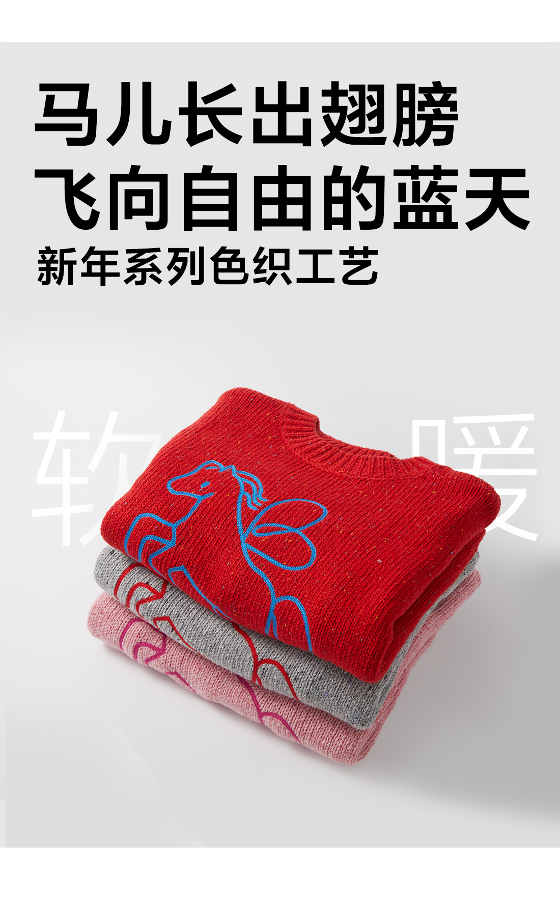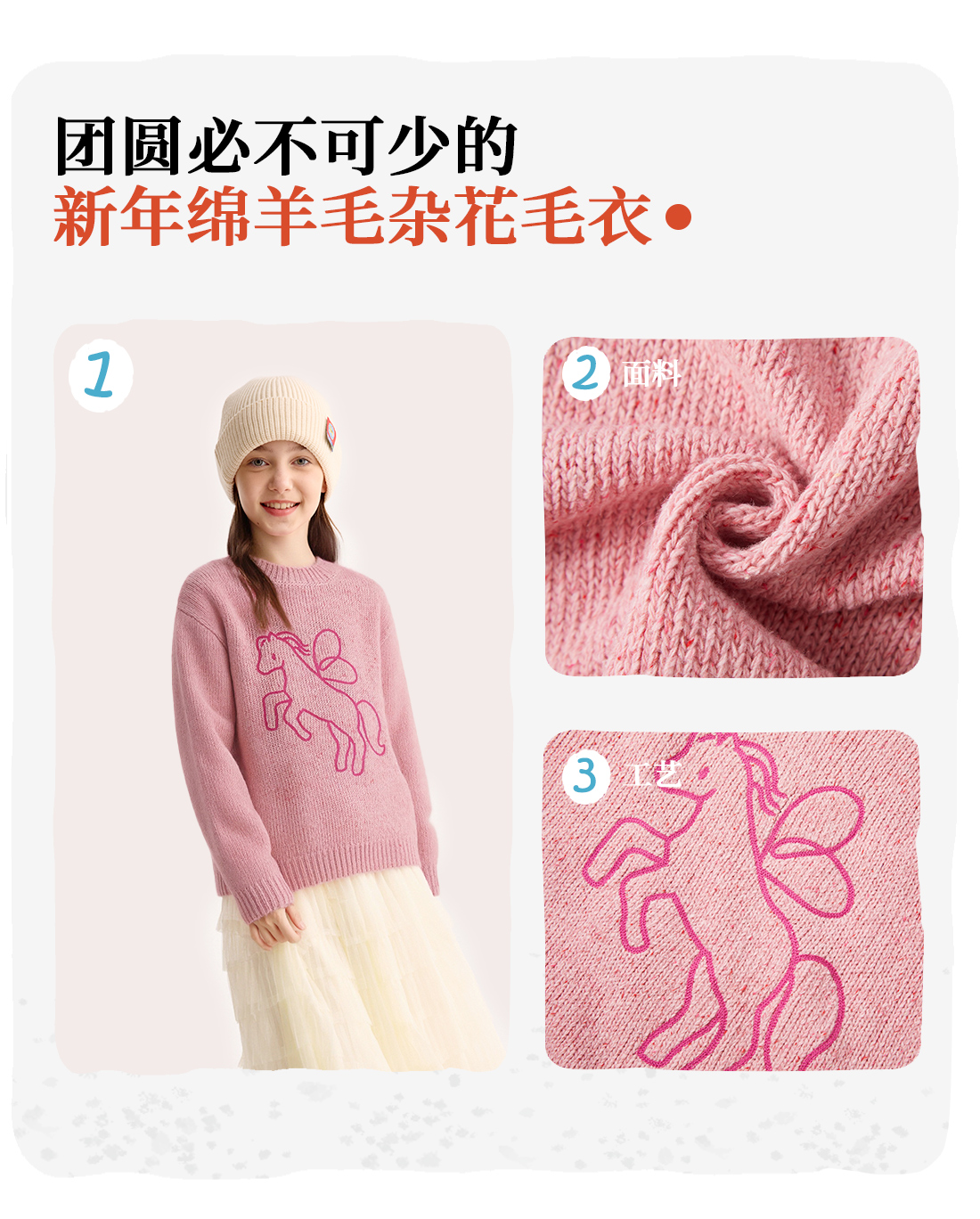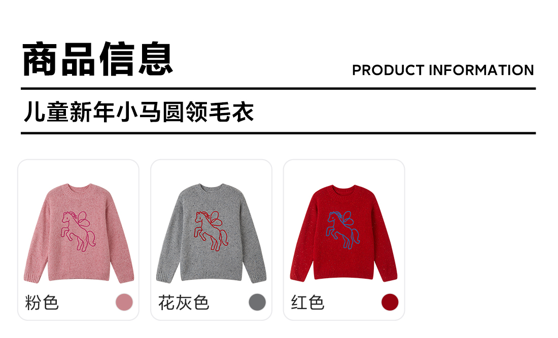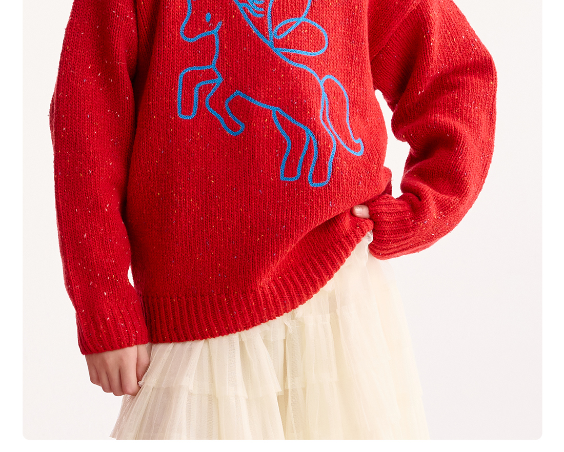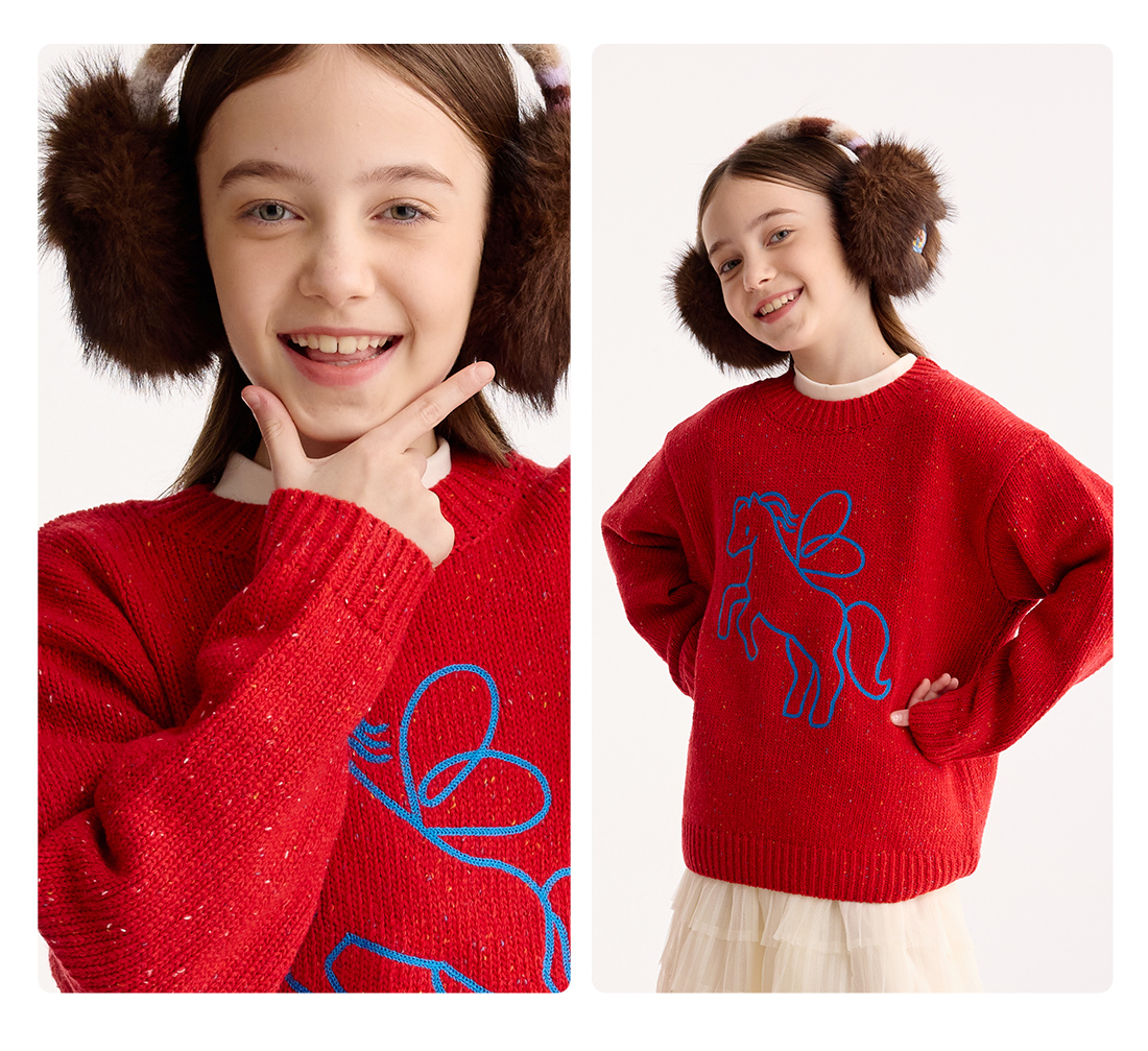 【超级马力】咕噜日记儿童新年小马圆领毛衣冬季男童女童马年线衣PDMY2527