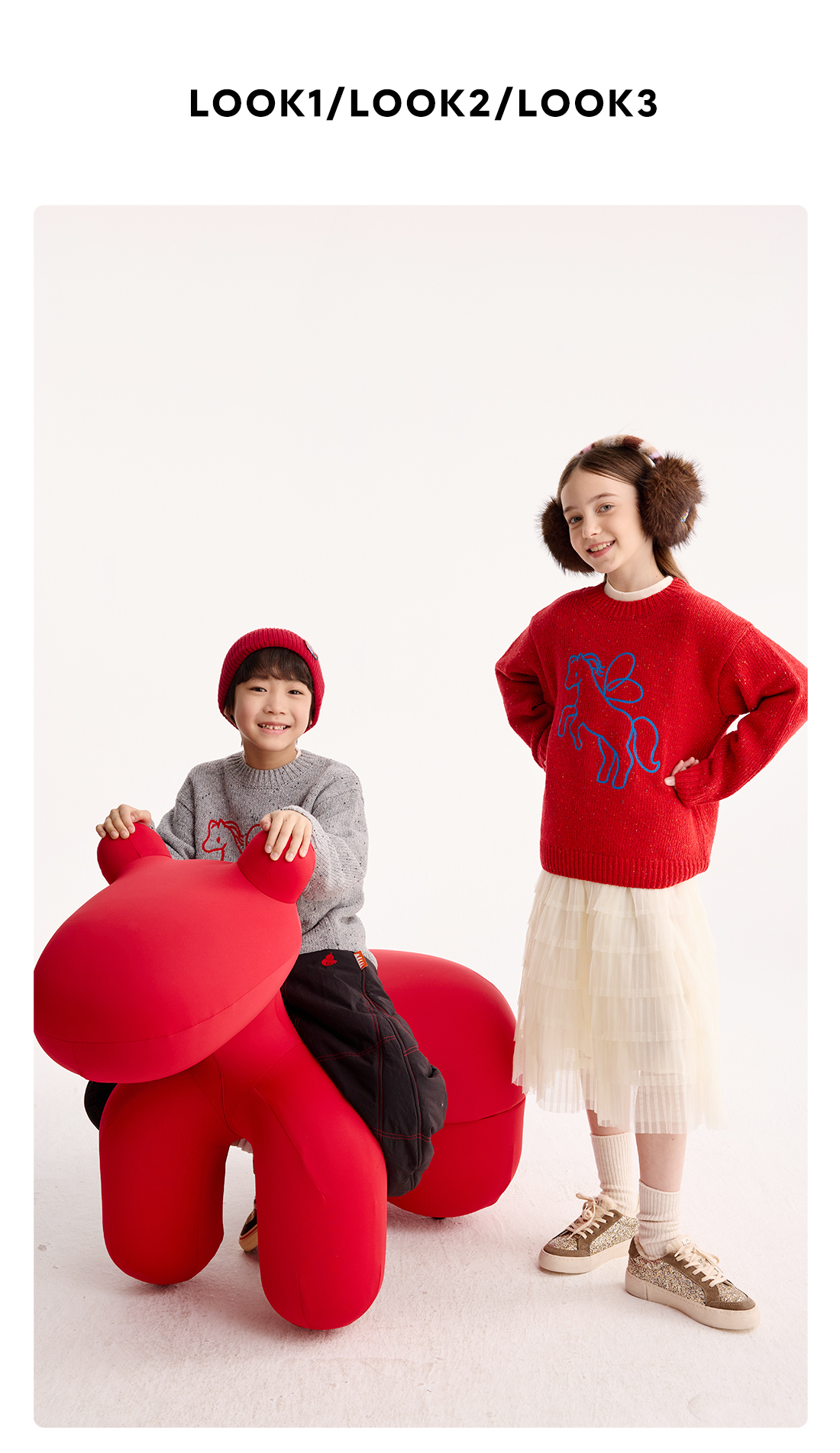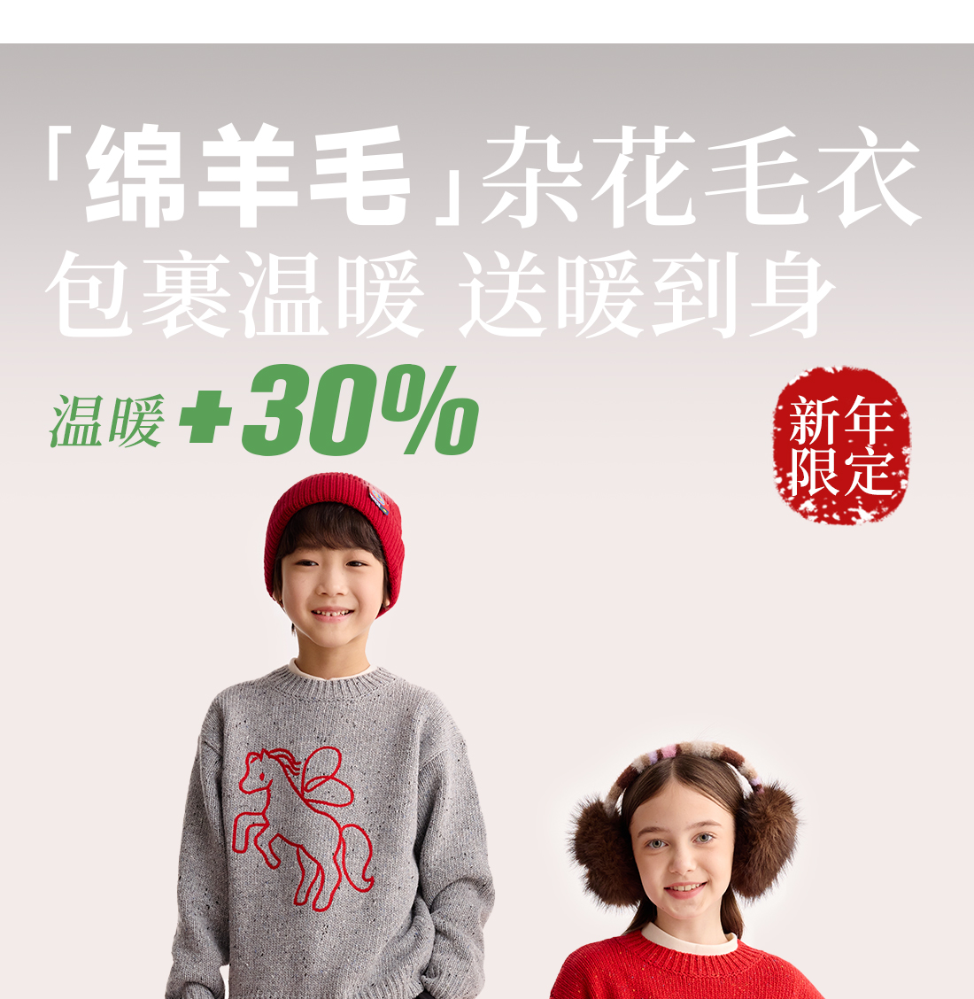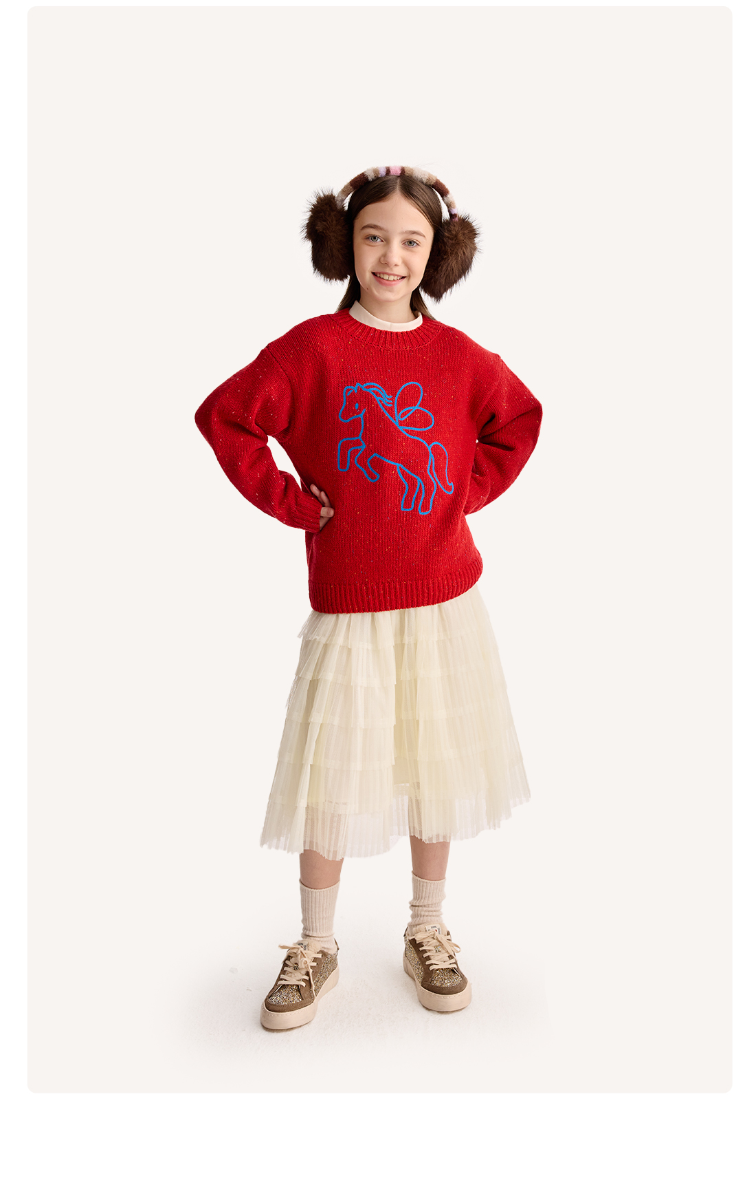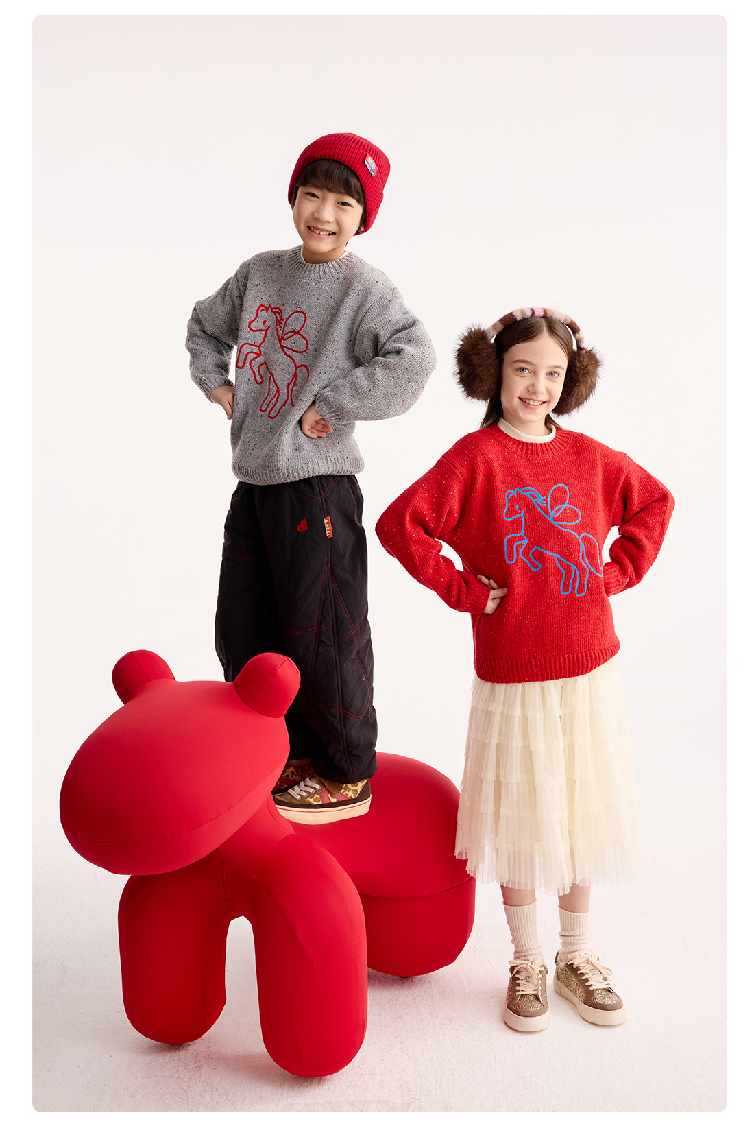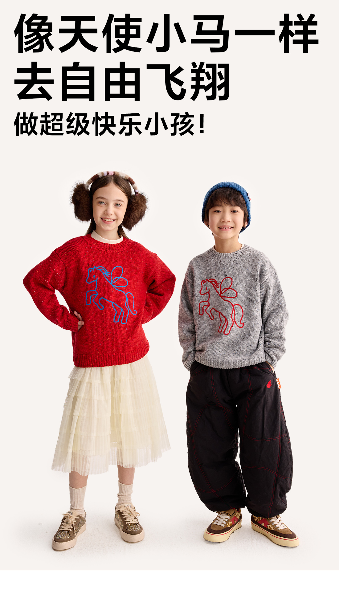 【超级马力】咕噜日记儿童新年小马圆领毛衣冬季男童女童马年线衣PDMY2527