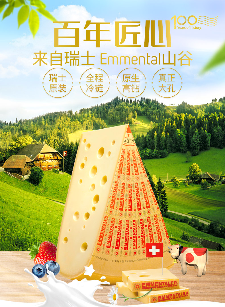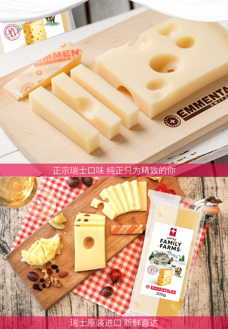 瑞慕瑞士原装进口Emmental埃曼塔大孔原制干酪块200g*2
