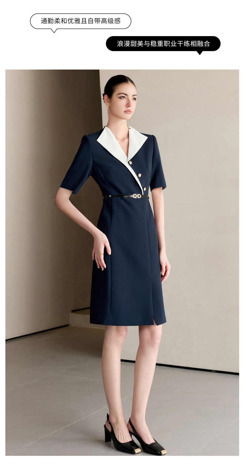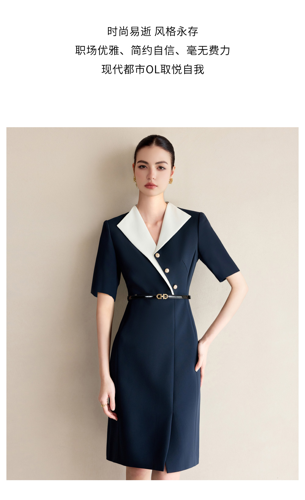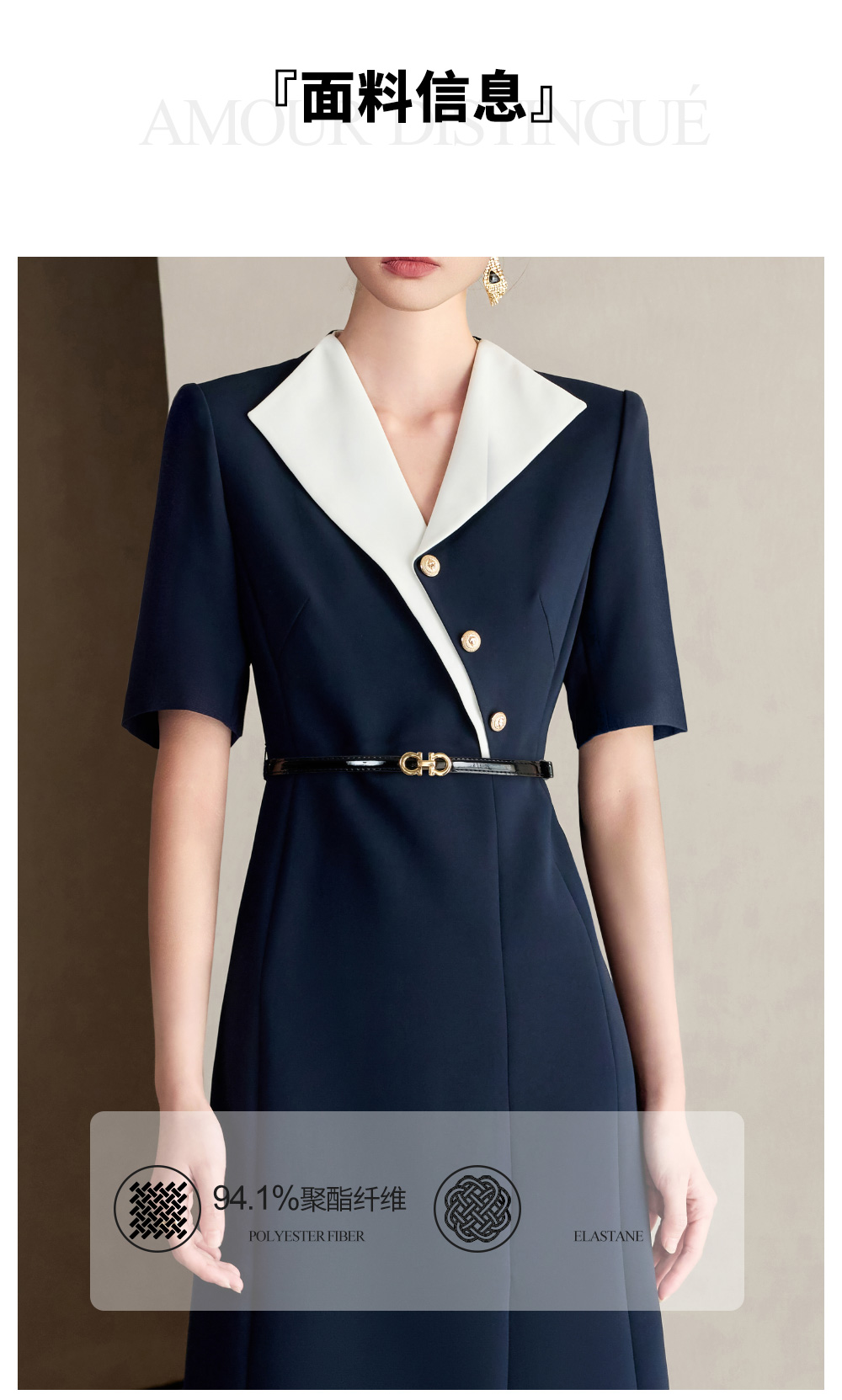 IWY/气质拼接领短袖西装连衣裙女高级感珠宝设计师工作服酒店接待正装25Q770