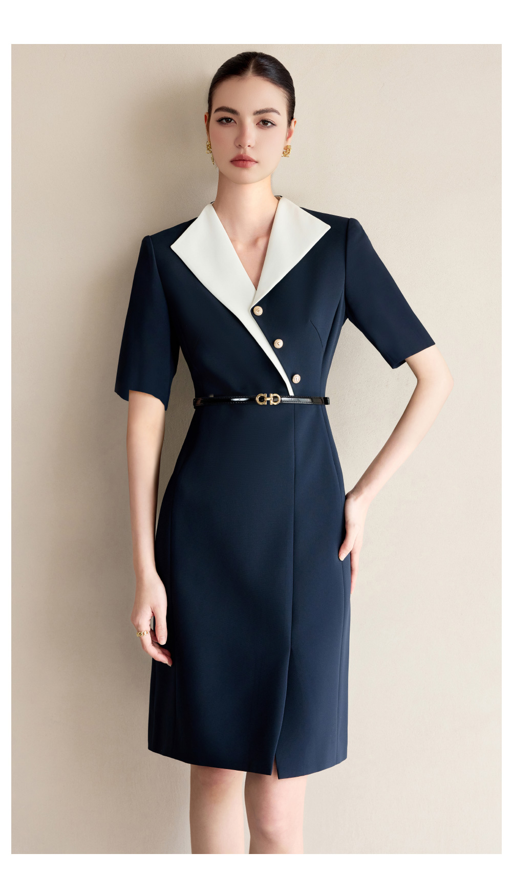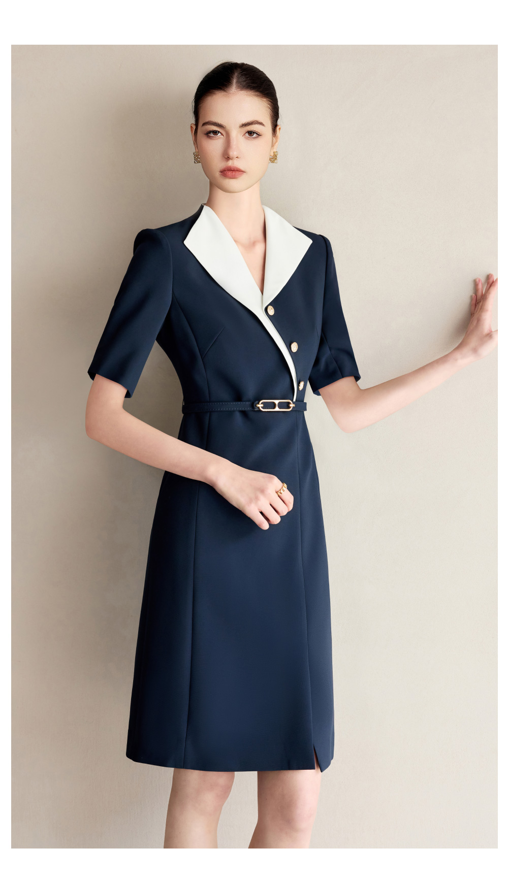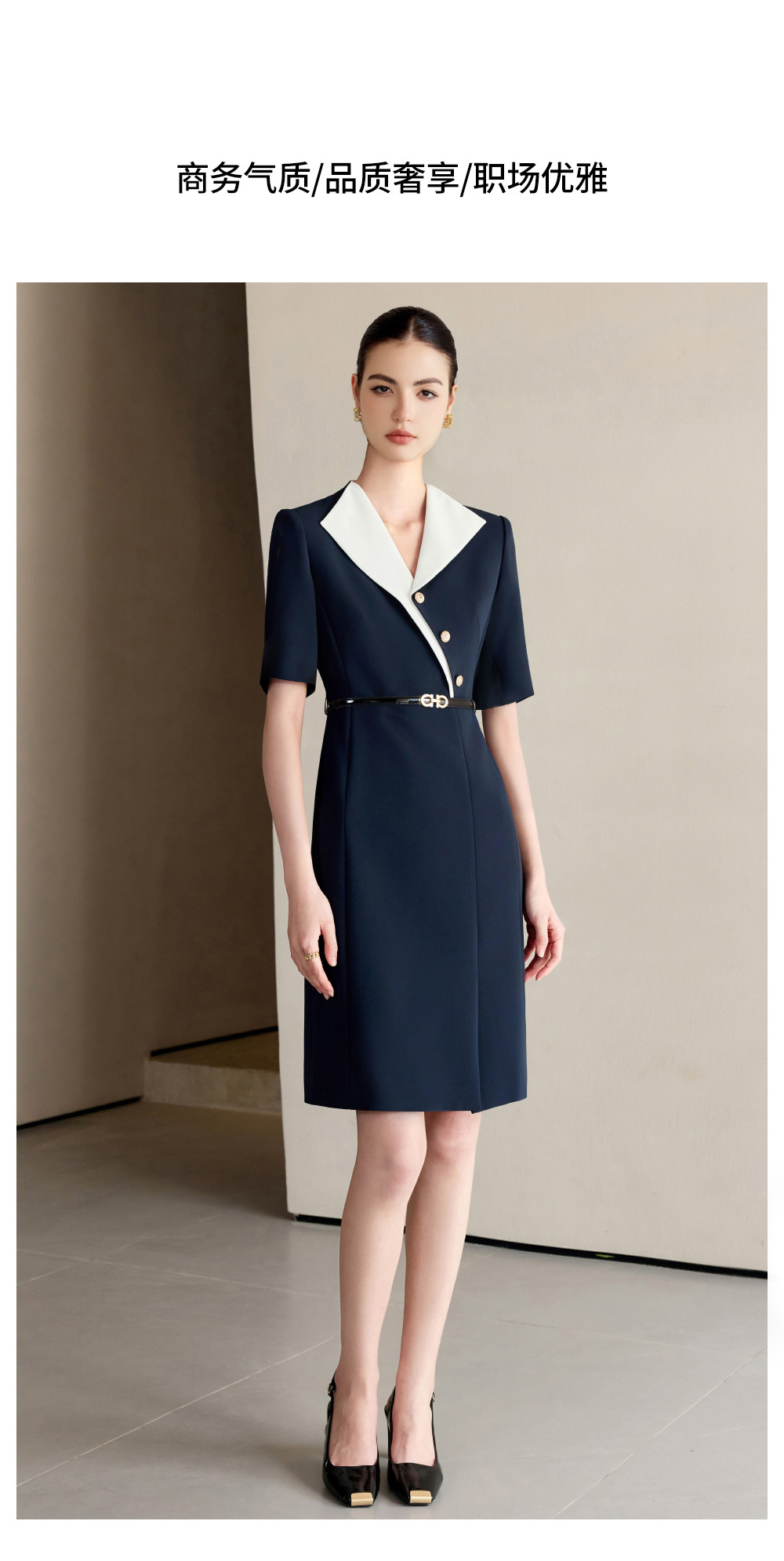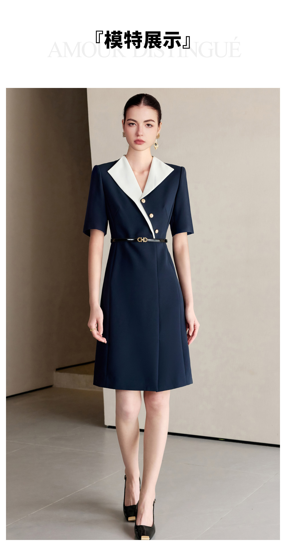 IWY/气质拼接领短袖西装连衣裙女高级感珠宝设计师工作服酒店接待正装25Q770