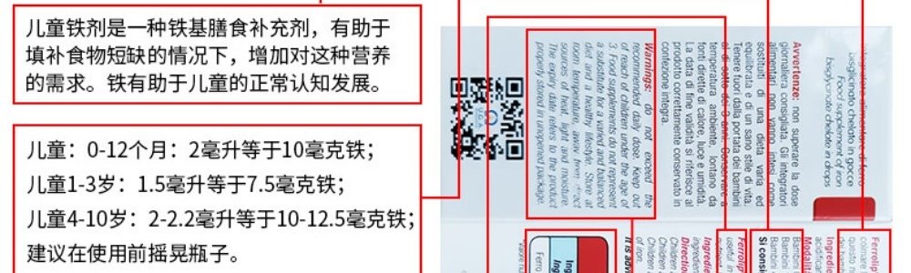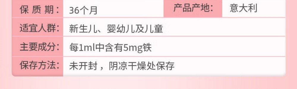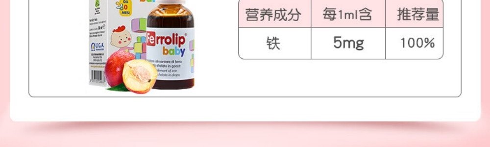 【保税】意大利 意之宝(Ferrolip)儿童小红桃铁滴剂 30ml/瓶