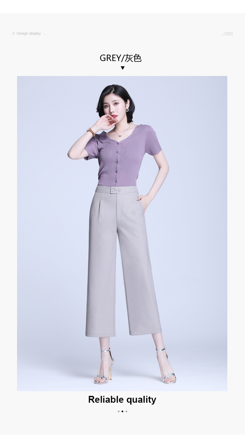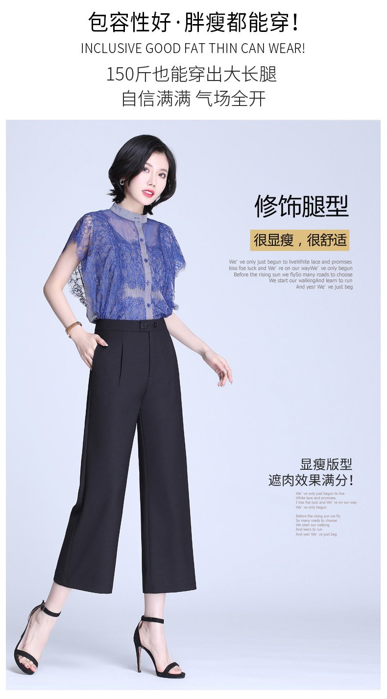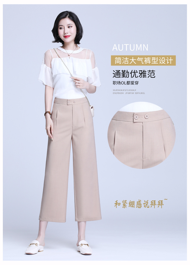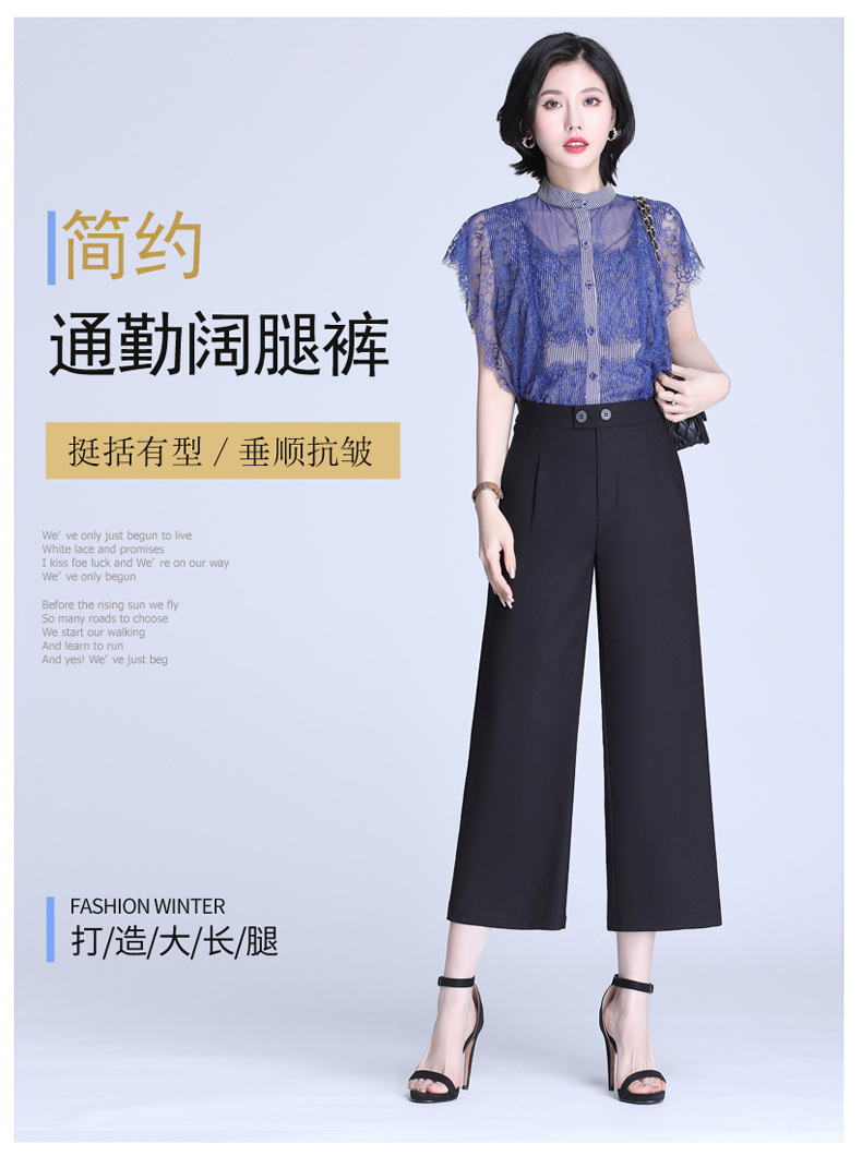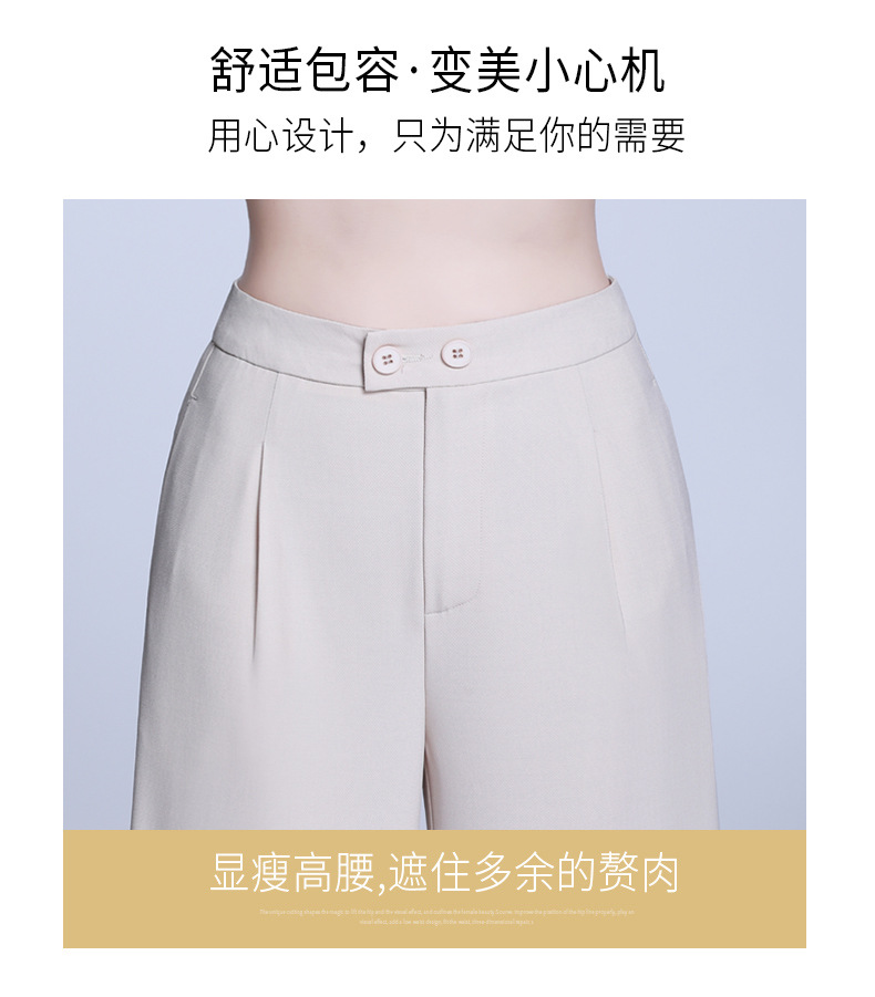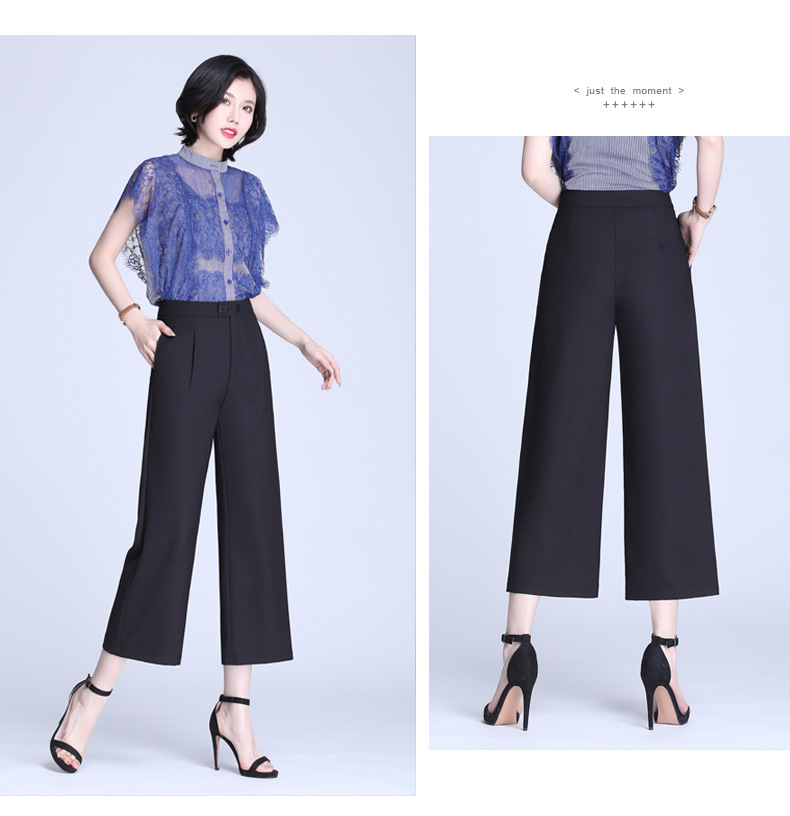 简约通勤黑色阔腿裤,高腰夏季新款宽松垂感裤子显瘦休闲九分OL直筒裤 MFE8850