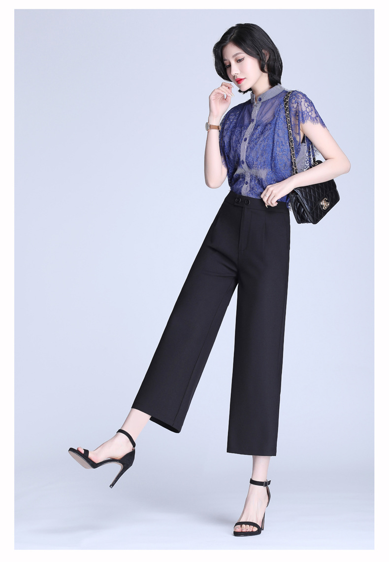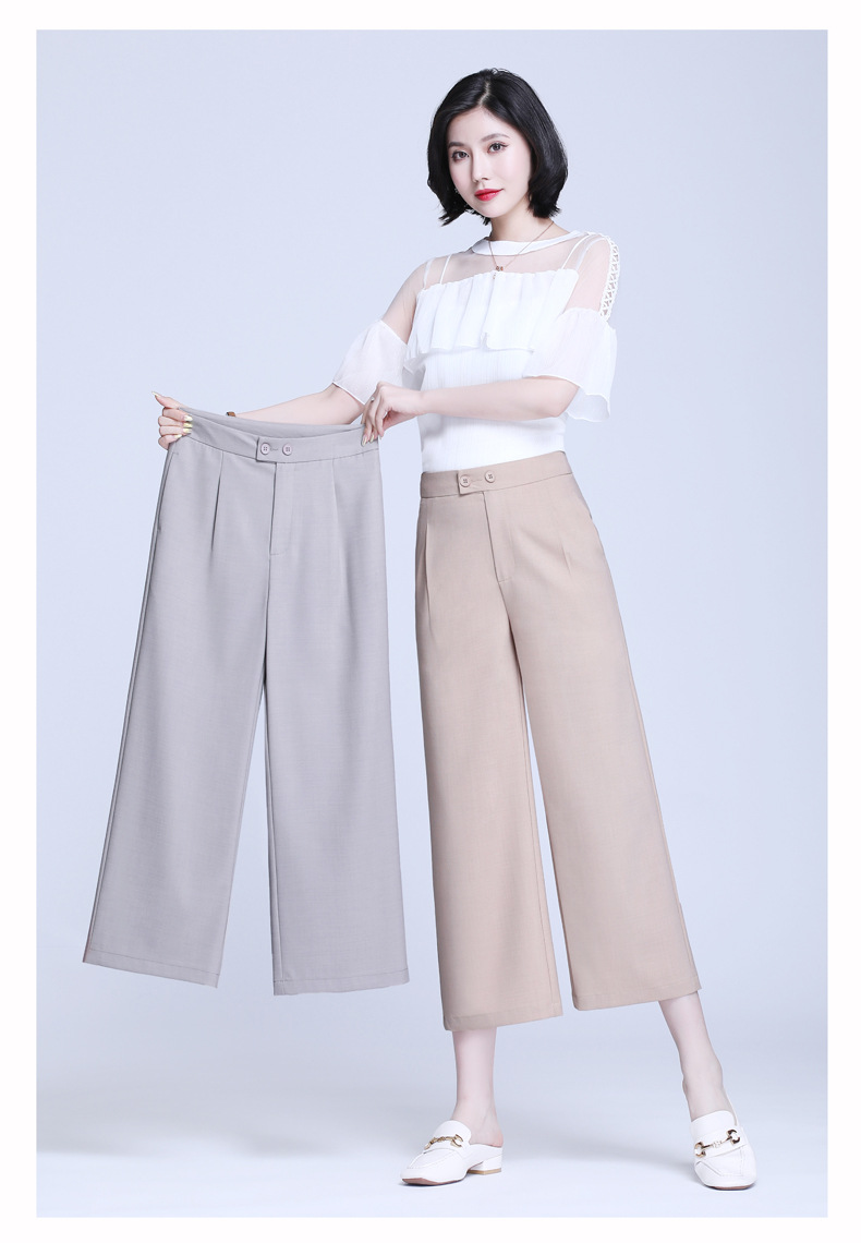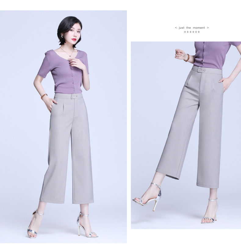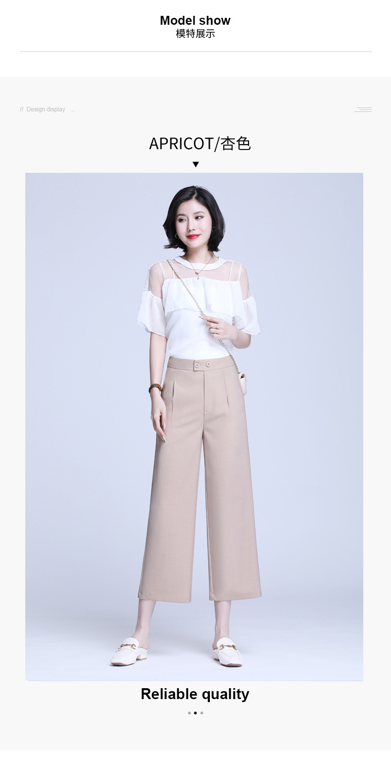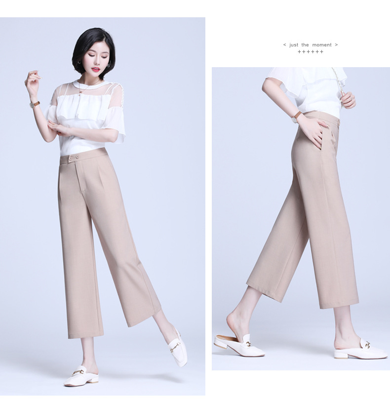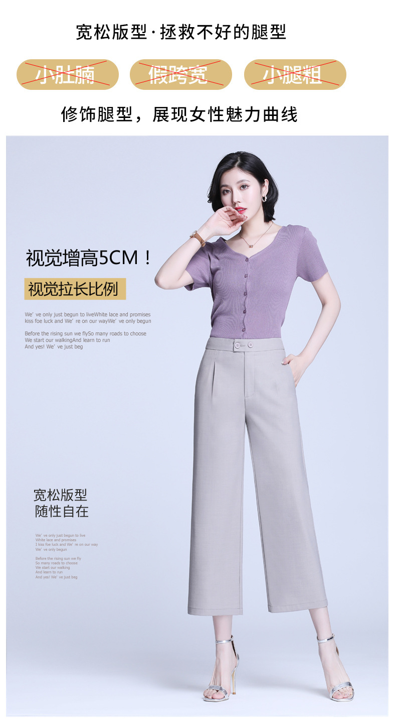 简约通勤黑色阔腿裤,高腰夏季新款宽松垂感裤子显瘦休闲九分OL直筒裤 MFE8850