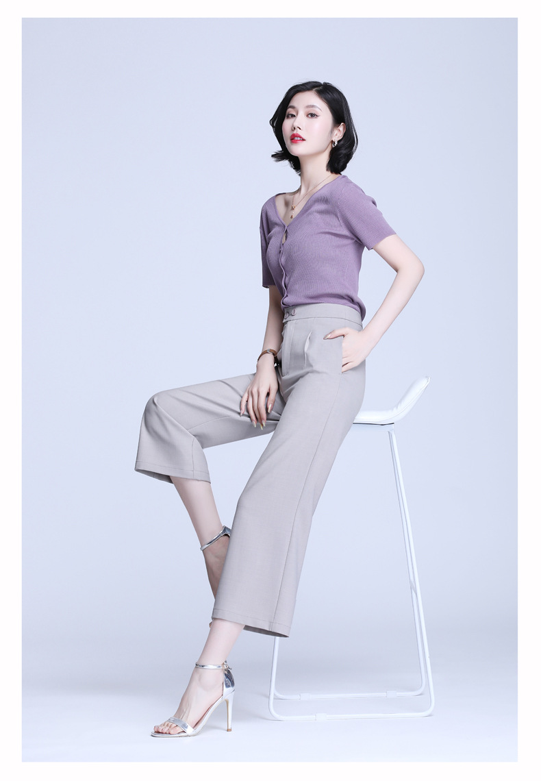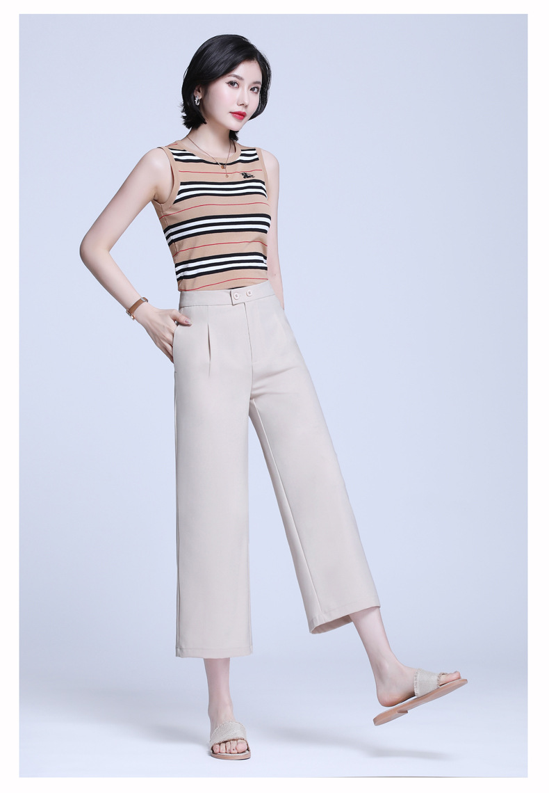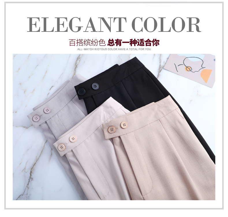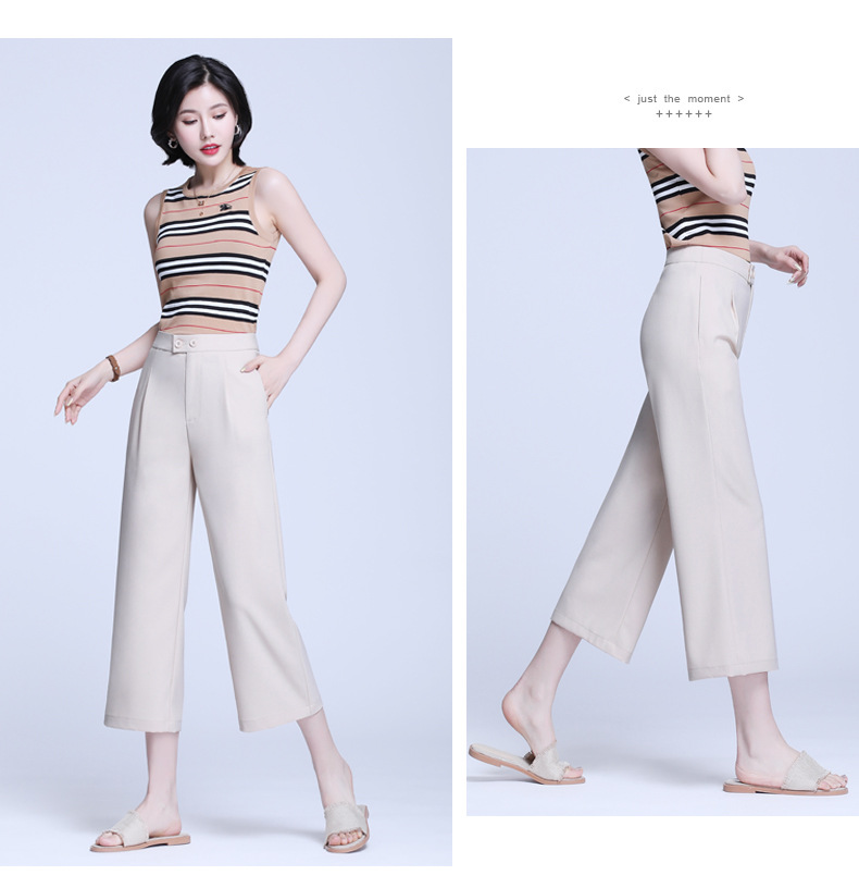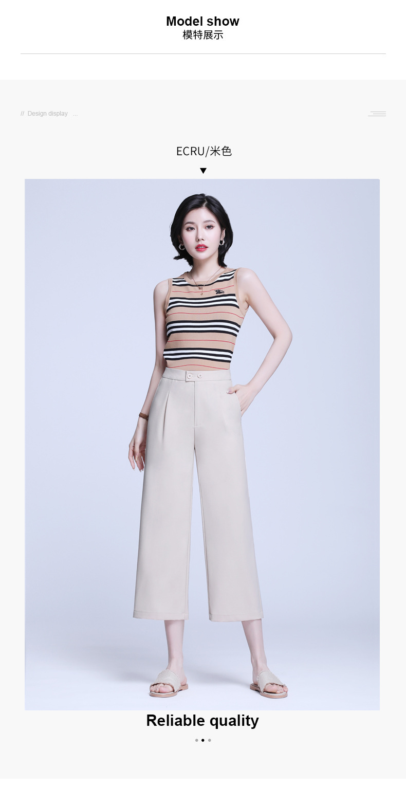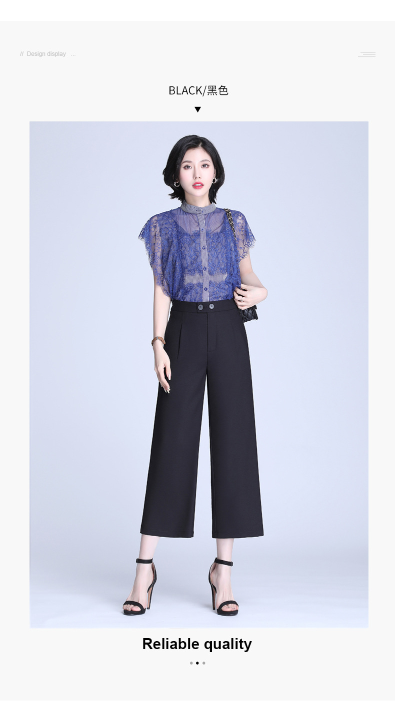 简约通勤黑色阔腿裤,高腰夏季新款宽松垂感裤子显瘦休闲九分OL直筒裤 MFE8850