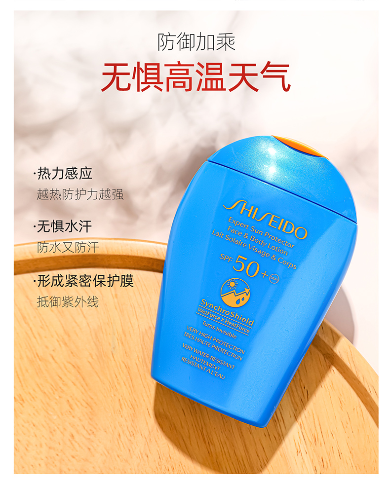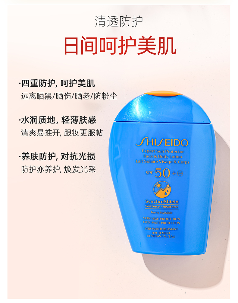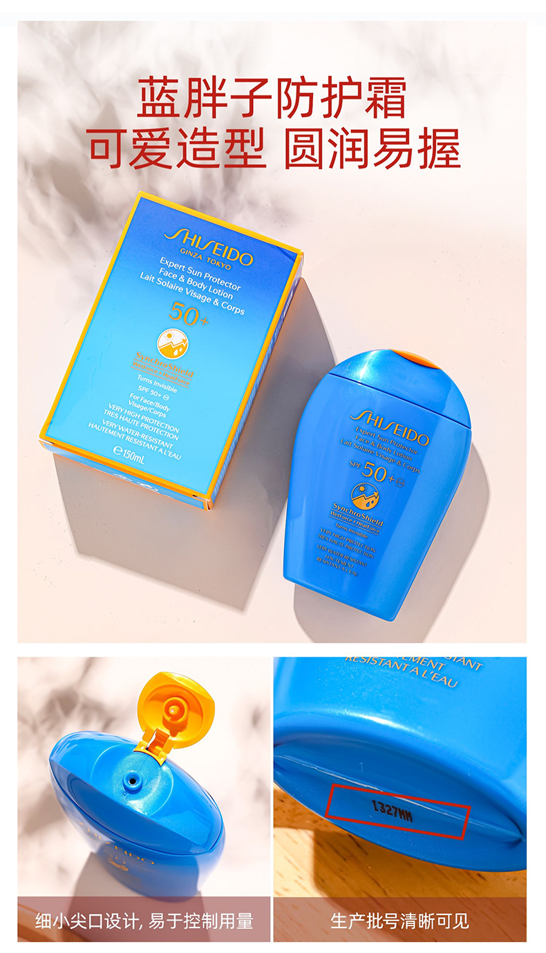 资生堂蓝胖子防嗮乳液150ml防水防汗霜面部及身体