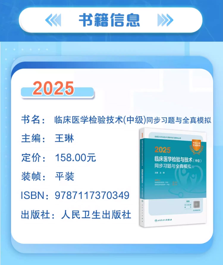 书名:2025临床医学检验与技术(中级)同步习题与全真模拟