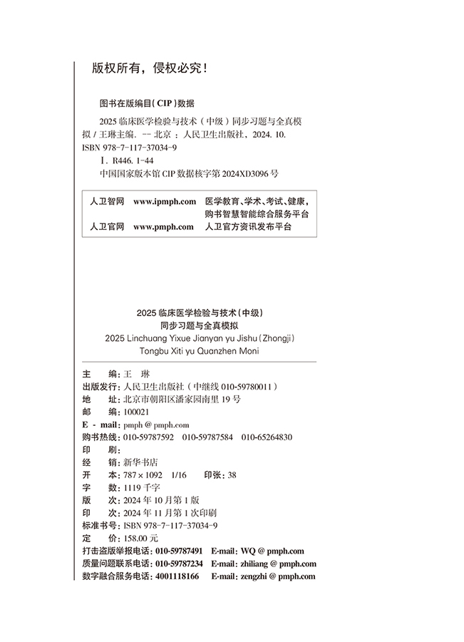 2025临床医学检验与技术 中级 同步习题与全真模拟全国卫生专业技术资格考试习题集丛书适用专业临床医学检验学(中级)临床医学检验技术(中级)9787117370349人民卫生出版社