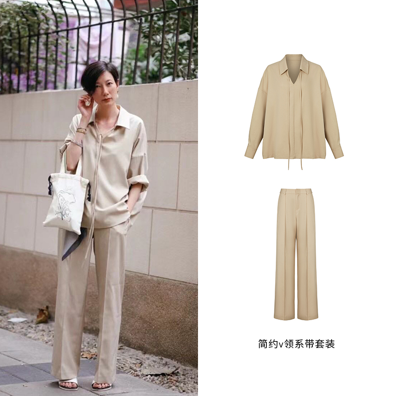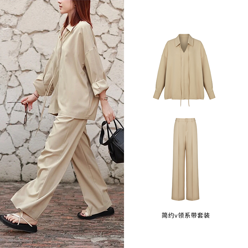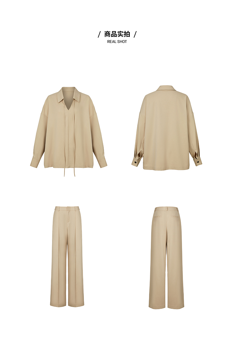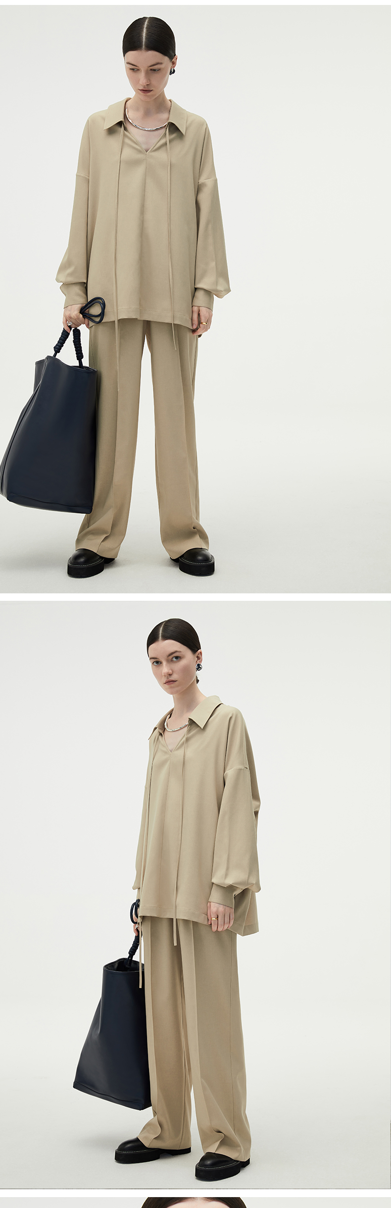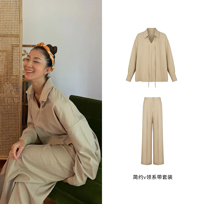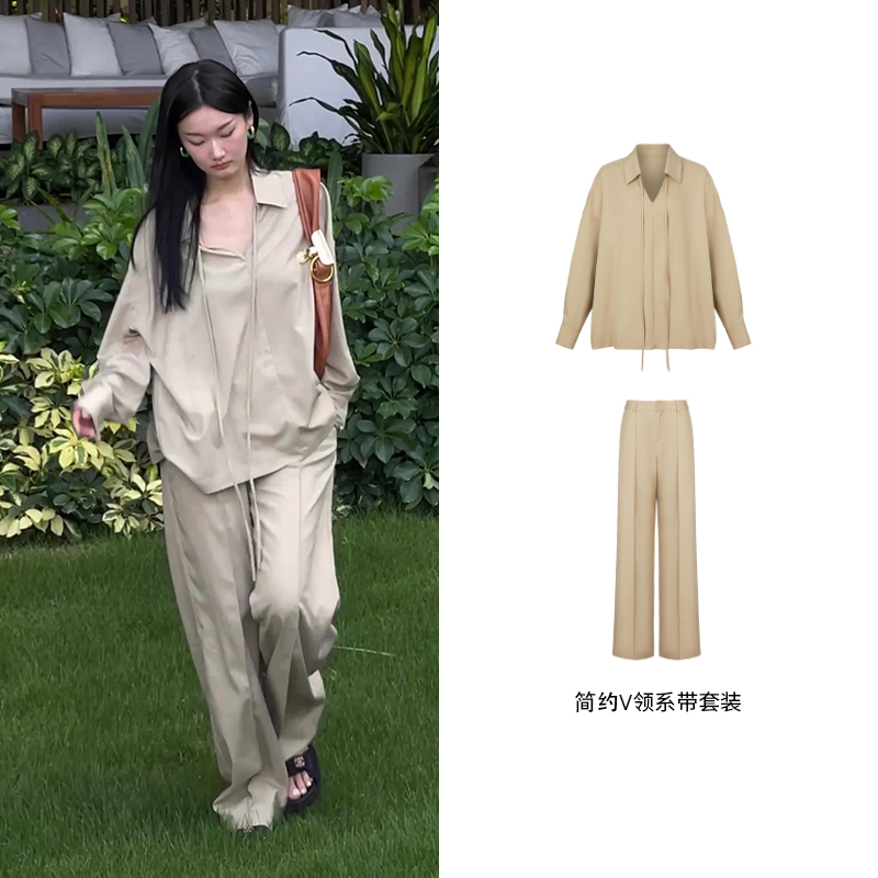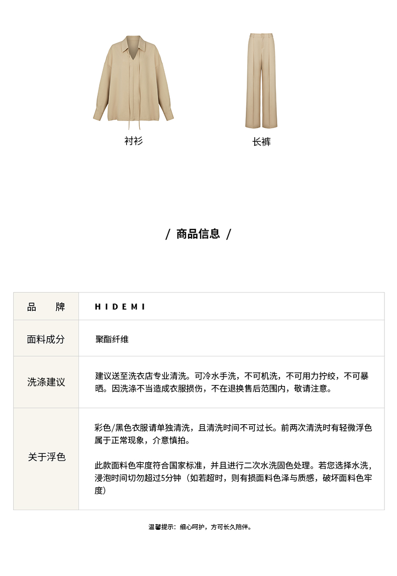 HIDEMI简约设计感v领系带套装 上衣/长裤