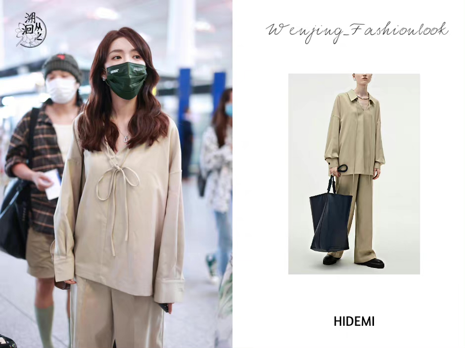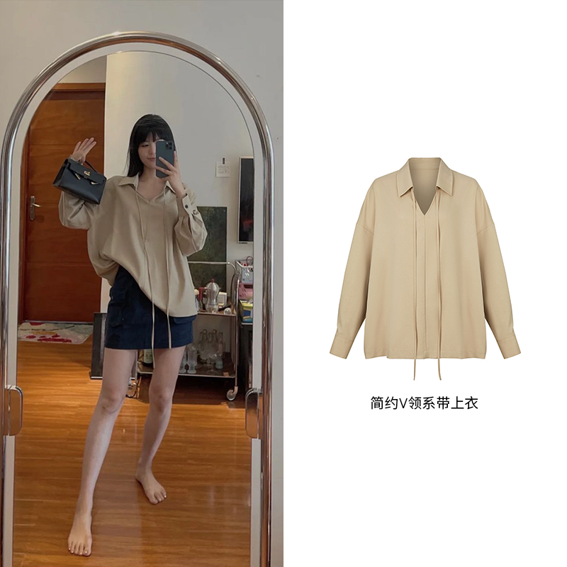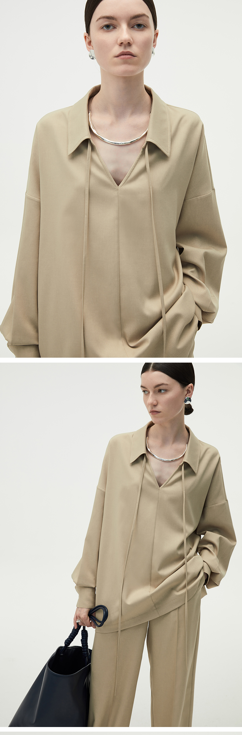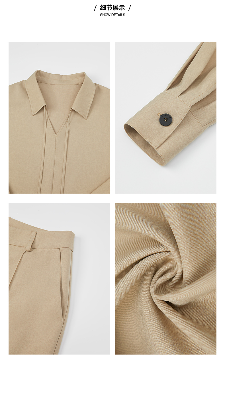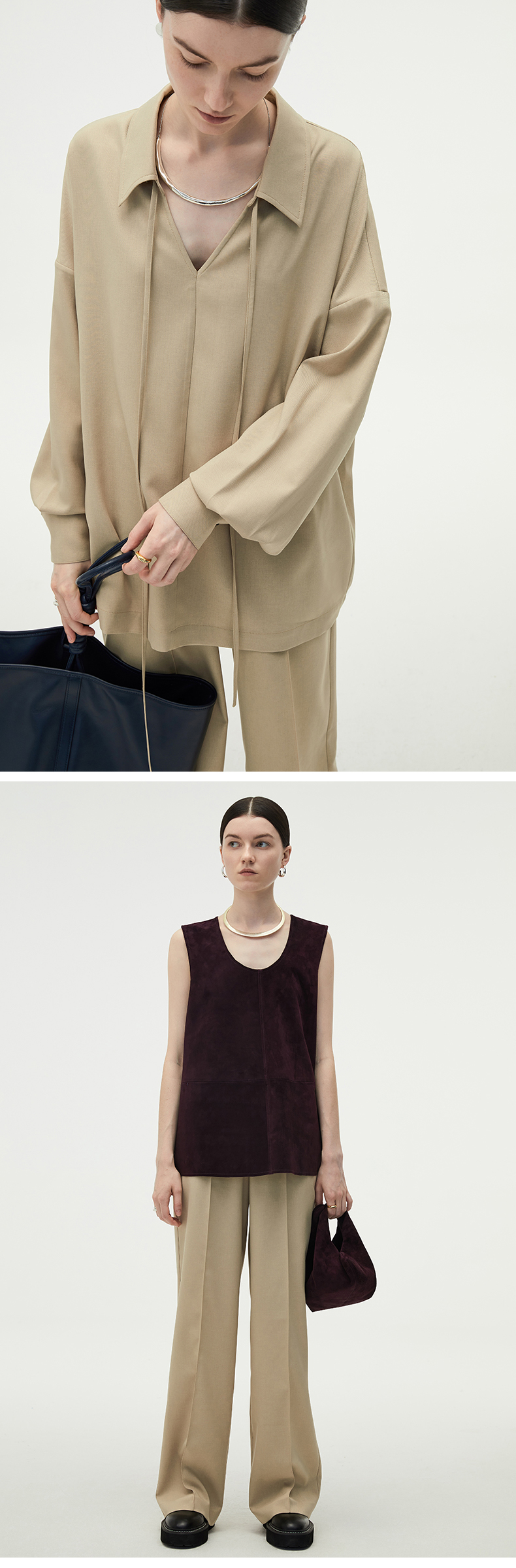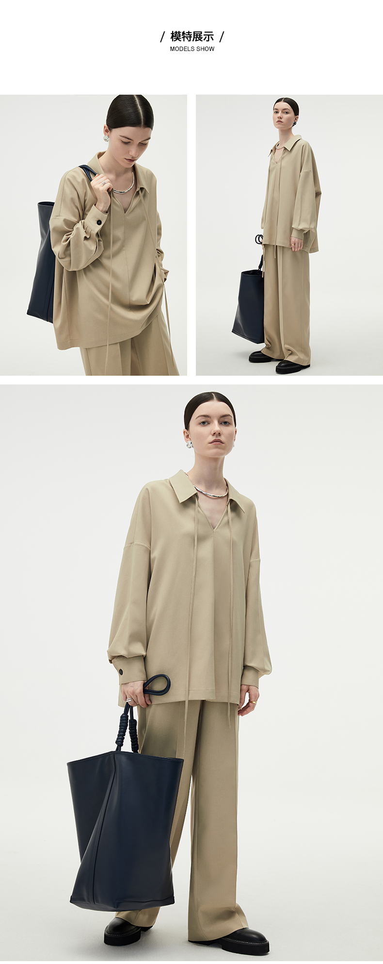 HIDEMI简约设计感v领系带套装 上衣/长裤