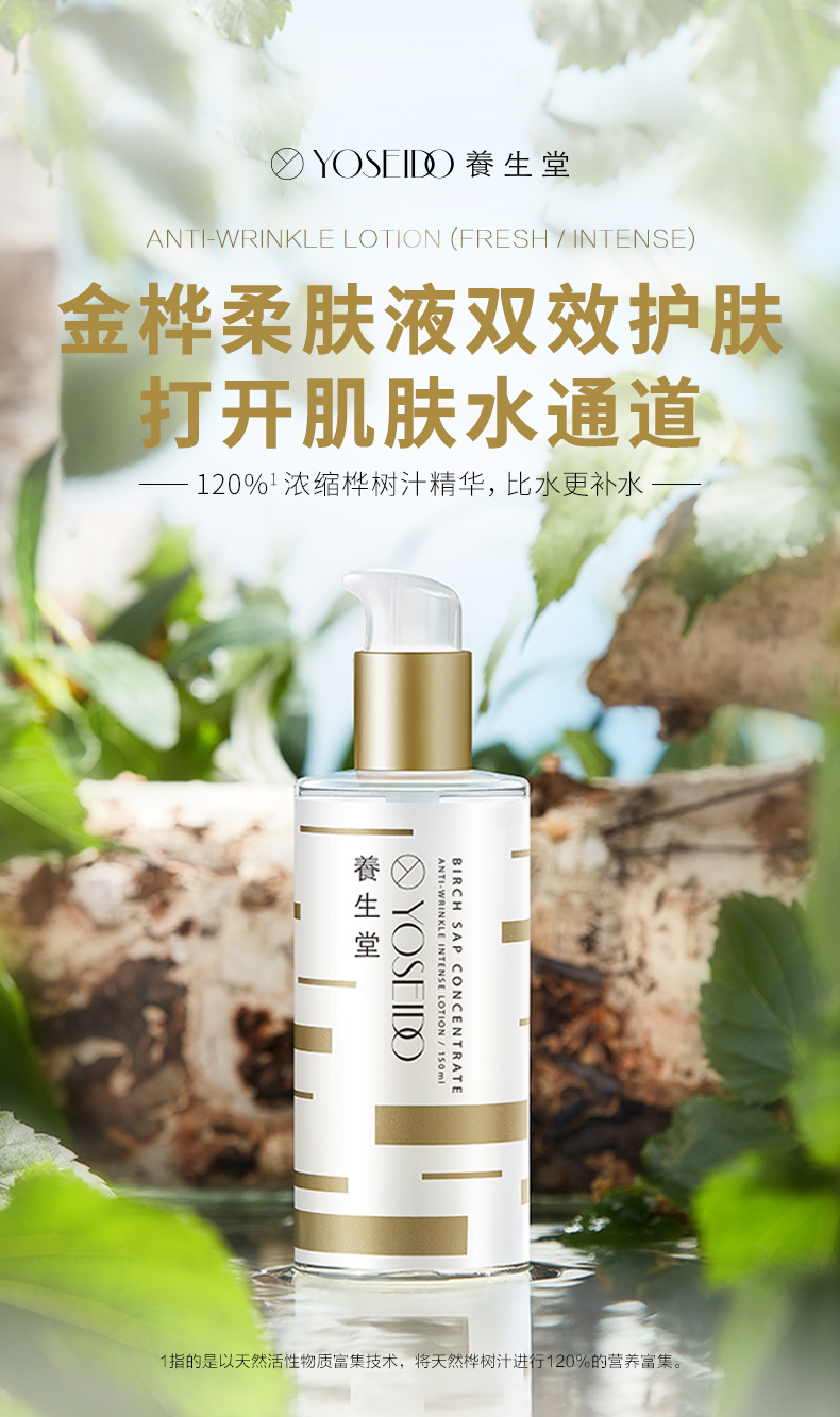 养生堂YOSEIDO,高端护肤品牌。专研白桦原液•来自北纬45° 的细胞抗老成分,源自1772年《丹麦药典》。不额外添加一滴水,让青春永续。