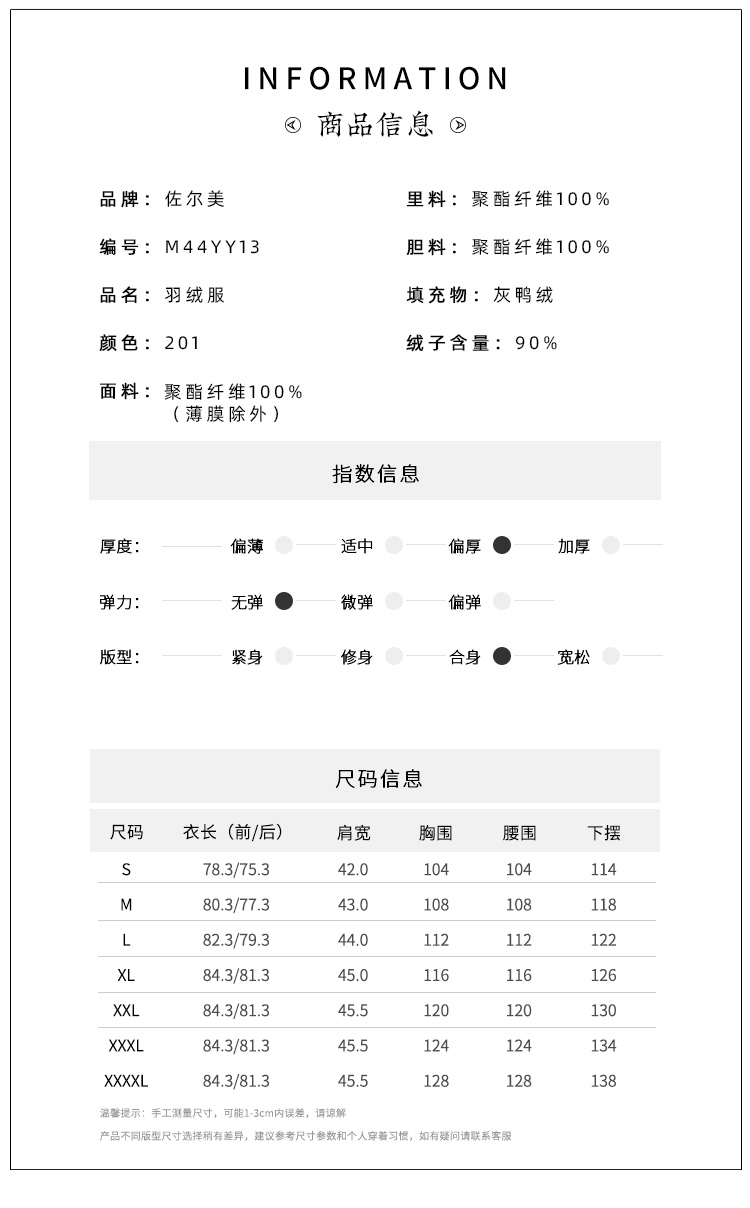 佐尔美冬季新款 气质经典舒适羽绒服女新年礼M44YY13