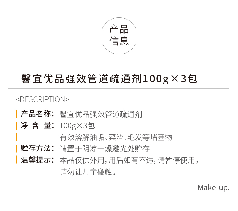馨宜优品强效管道疏通剂100g*3包(240766)