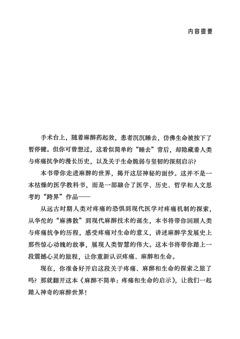 麻醉不简单 疼痛和生命的启示 方浩 顾卫东 主编 一部融合了医学历史哲学和人文思考的跨界作品 9787547871034上海科学技术出版社