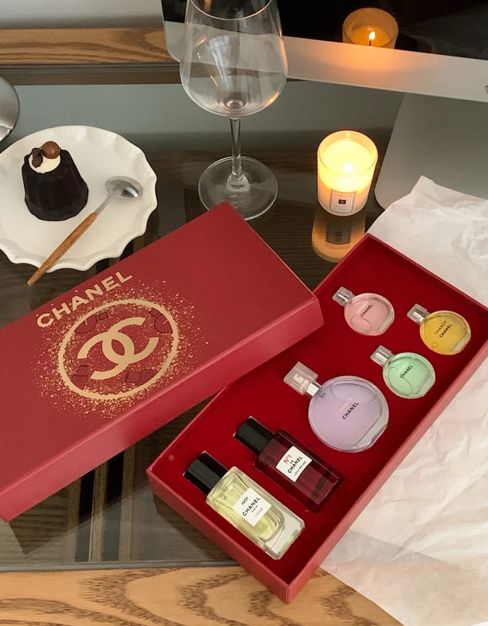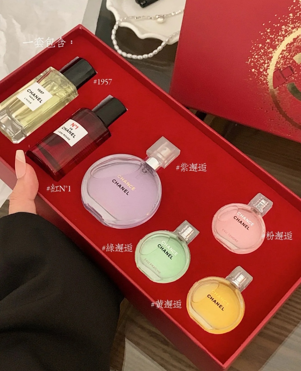 内含:30毫升中样,1957,红N1,紫邂逅,7.5毫升小样,粉邂逅,绿邂逅,黄邂逅。