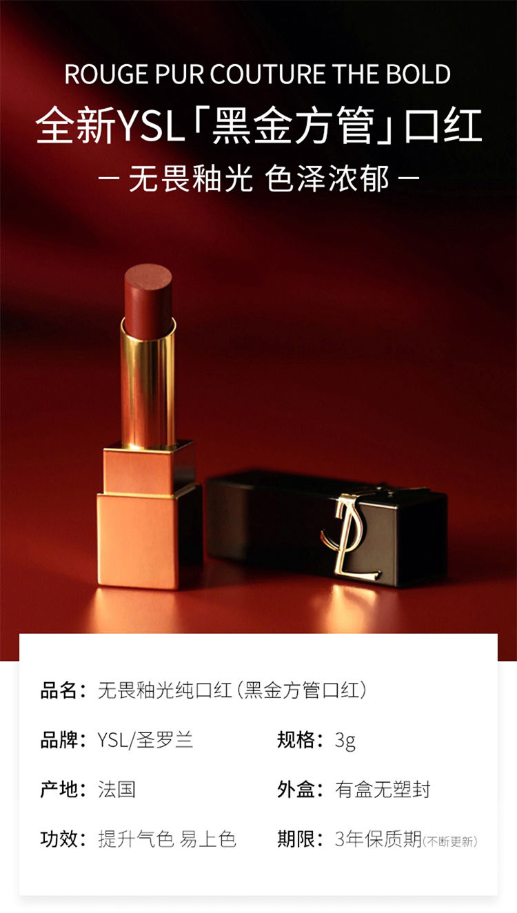 【预售 急单慎拍】YSL圣罗兰 黑金方管口红3g 釉光新品