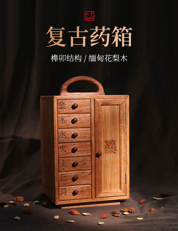 红木手提柜实木箱子茶饼书柜古典中式多层收纳药箱手饰花梨木提篮