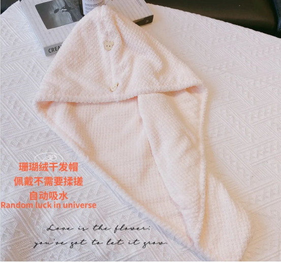 1.珊瑚绒干发帽,佩戴不需要揉搓,自动吸水,吸水量是普通毛巾的三倍,长发仙女的福音!