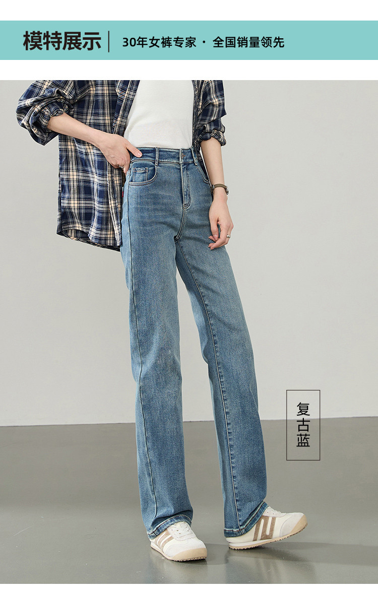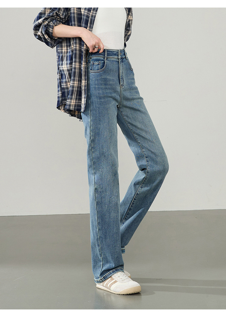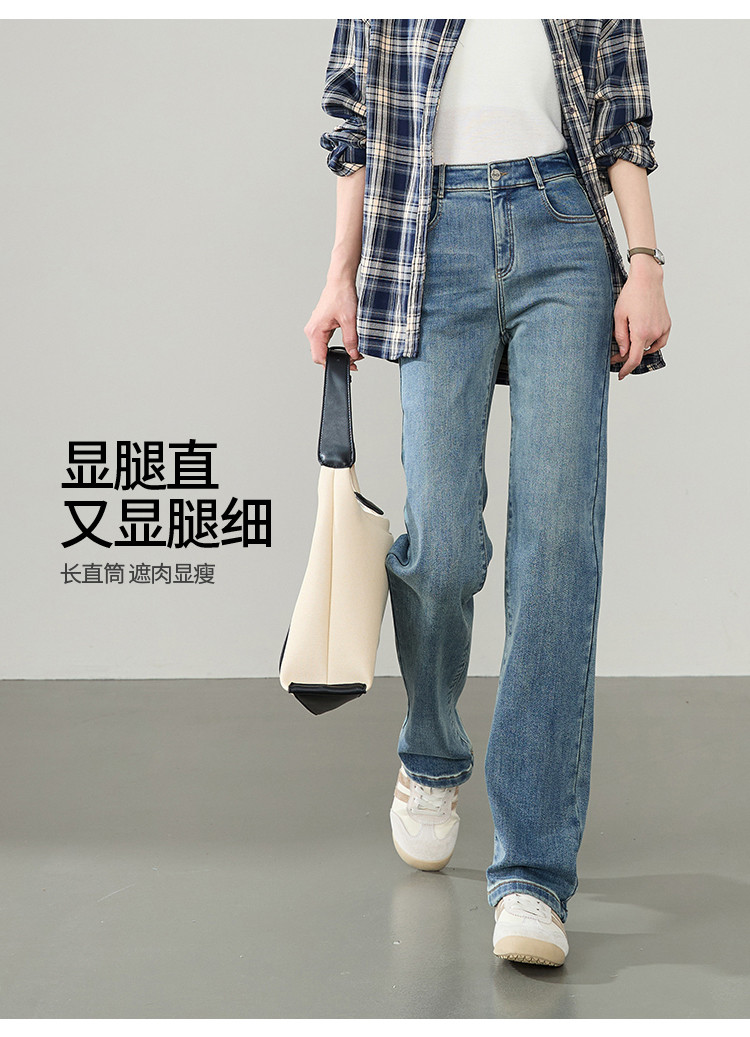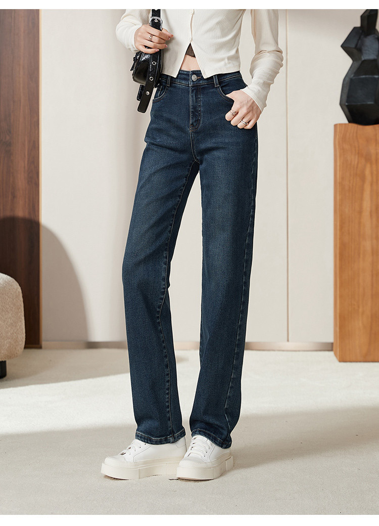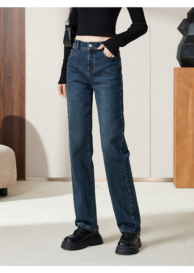 【薄绒牛仔-直筒长裤】逸阳秋冬新款弹力舒适磨毛款牛仔长裤4080