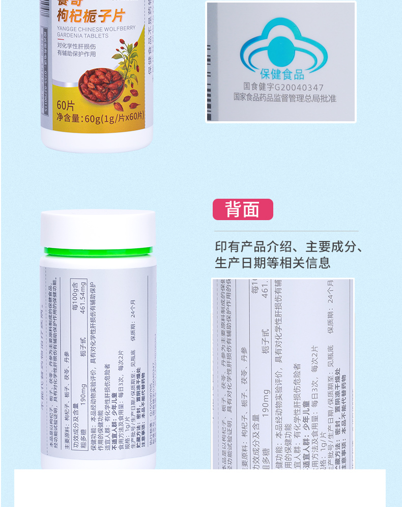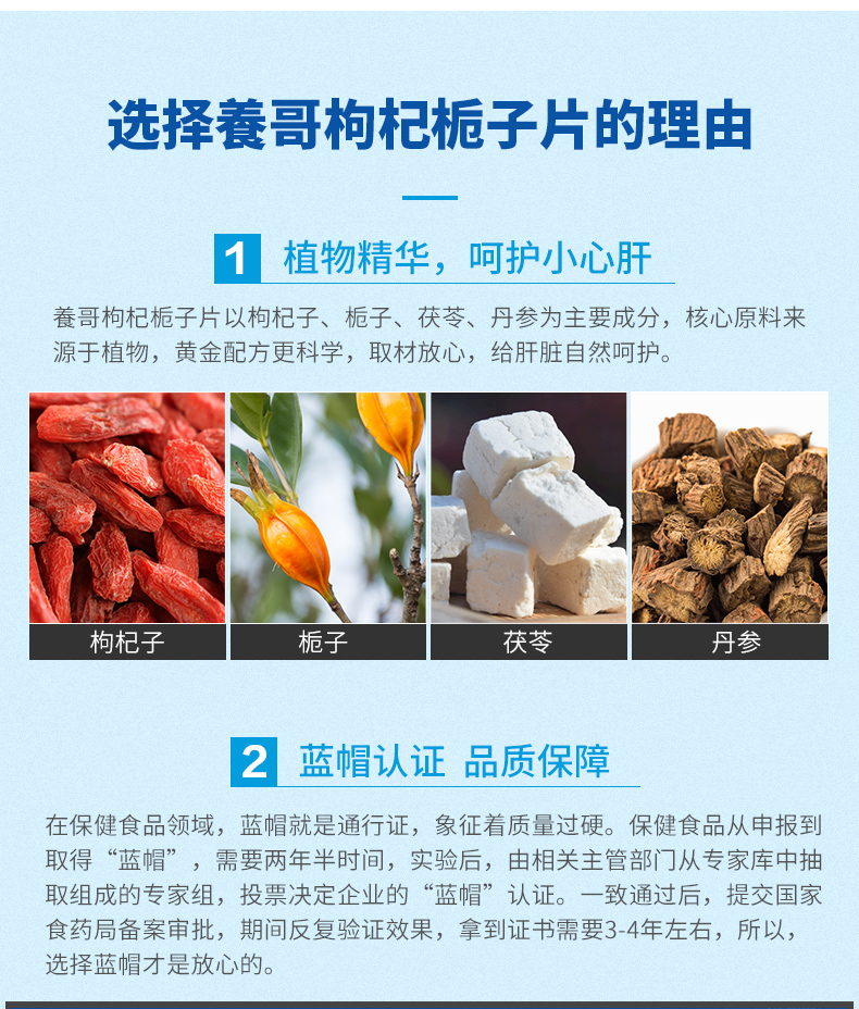 养哥枸杞栀子片 熬夜应酬肝脏养护 对化学性肝损伤有辅助保护肝作用 60粒/瓶