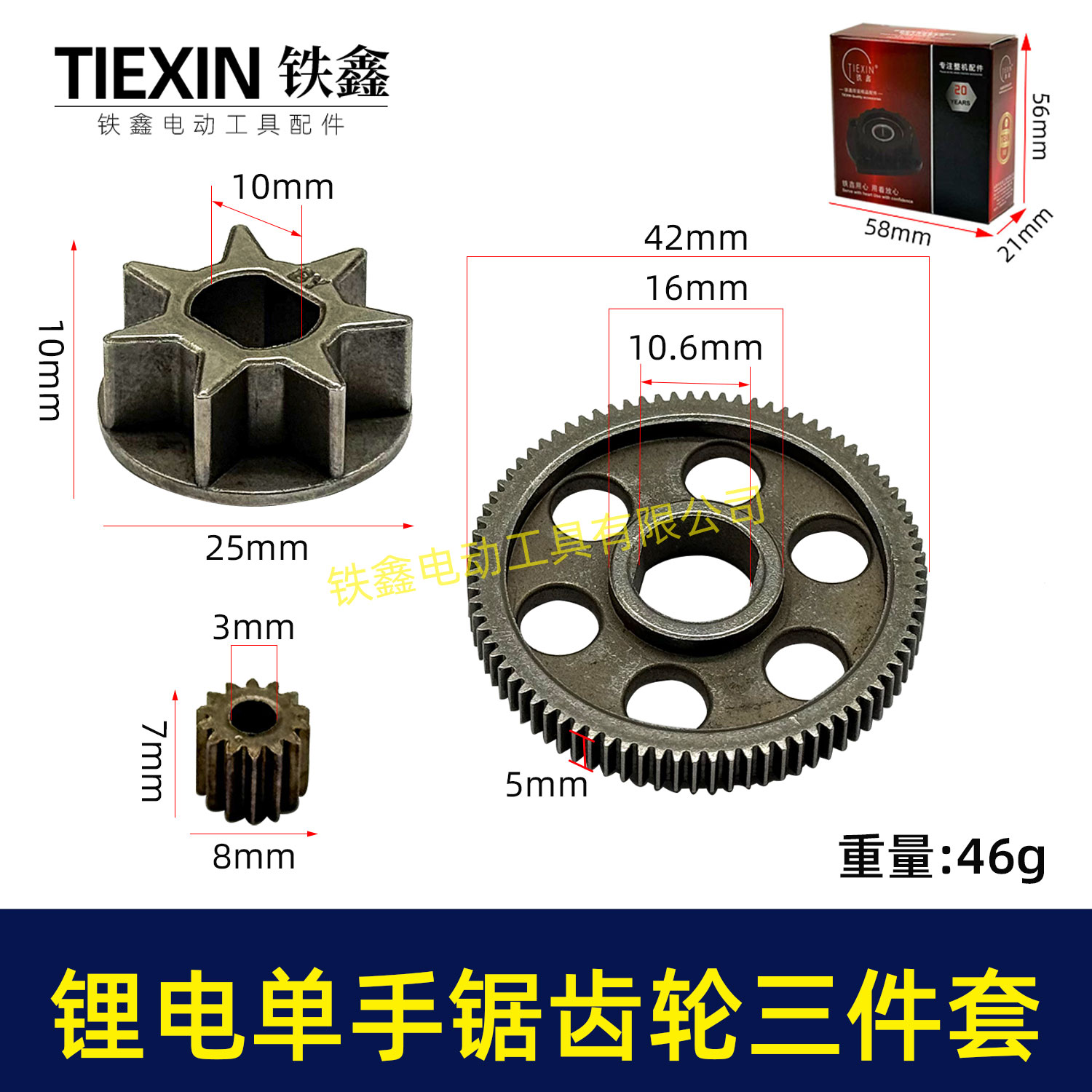 【货号07306】锂电电链锯齿轮三件套4寸单手锯6寸8寸单手锯锂电锯齿轮大小齿