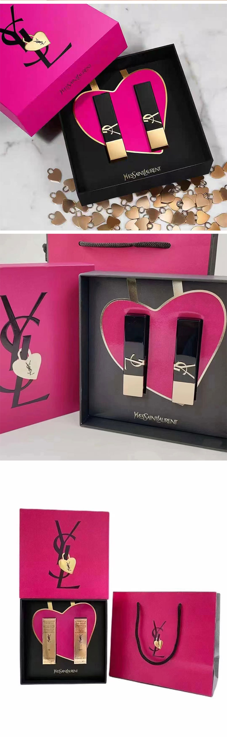 【送礼袋】YSL圣罗兰浮雕黑金方管口红3g*2支正装两件套礼盒 (#10+#1971) 香港直邮
