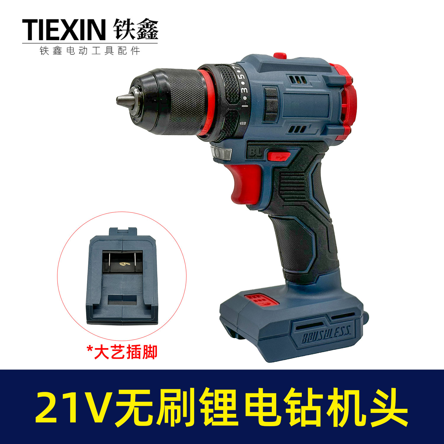 【货号010327】21V无刷锂电钻机头大扭力棘轮夹头电钻充电钻大艺插脚