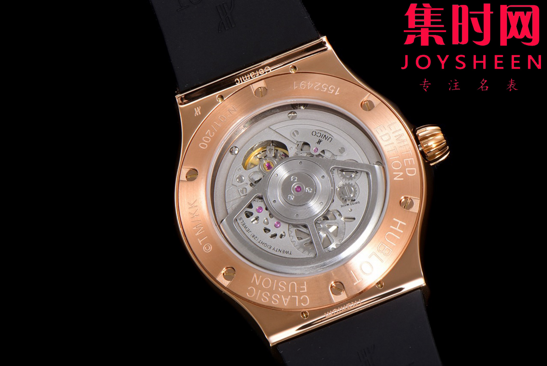 机芯:MHUB1214 UNICO 复杂功能自动上链机械机芯,烟灰色钌金属夹板和表桥,烟灰色涂层摆轮,钨金属摆轮,表面润饰微珠喷砂和缎面工艺,擒纵机构瑞士硅质杠杆式,擒纵机构,组件数量256,宝石数量30,振频4赫兹(每小时28,800次),动力储存 72小时