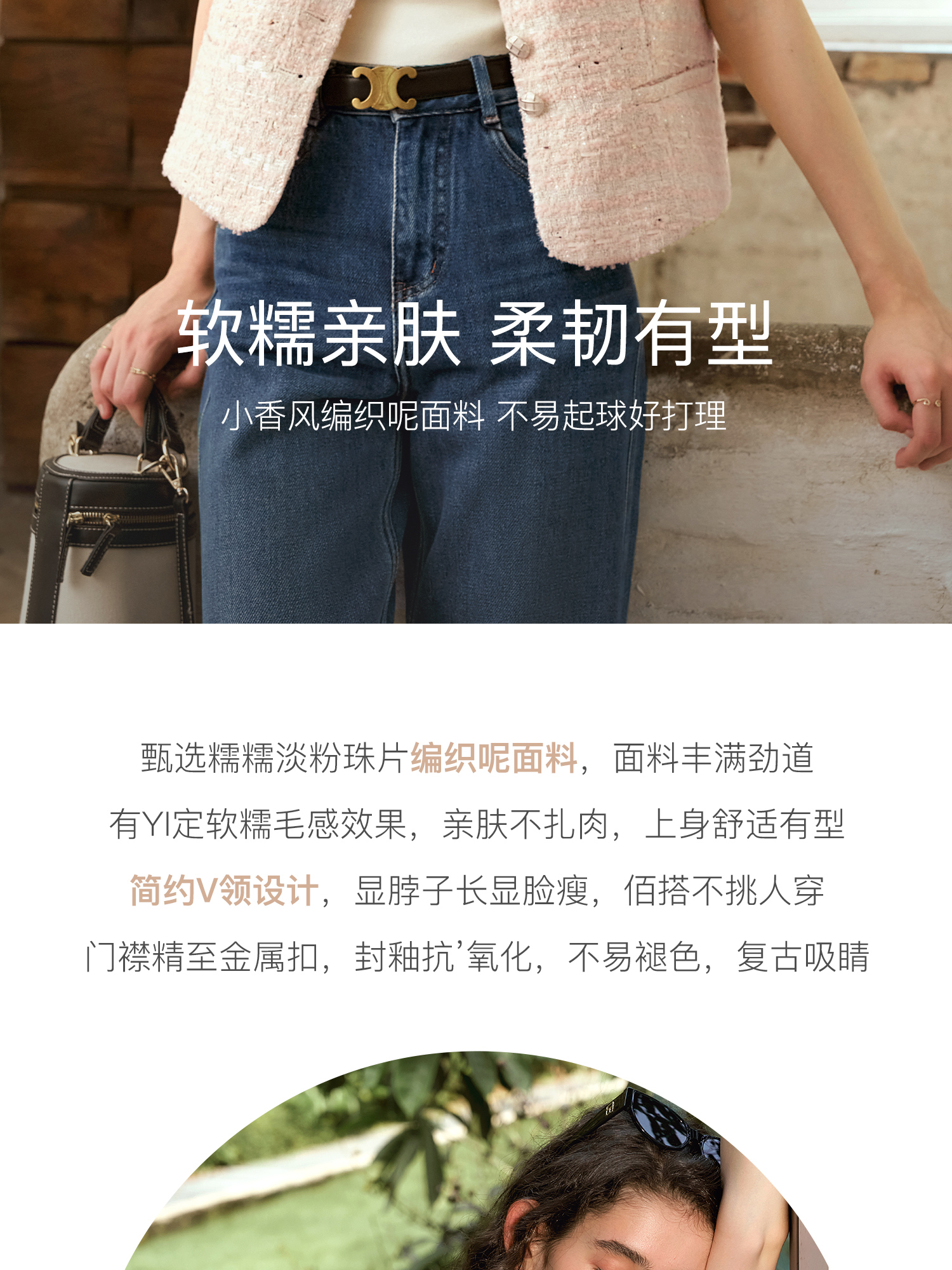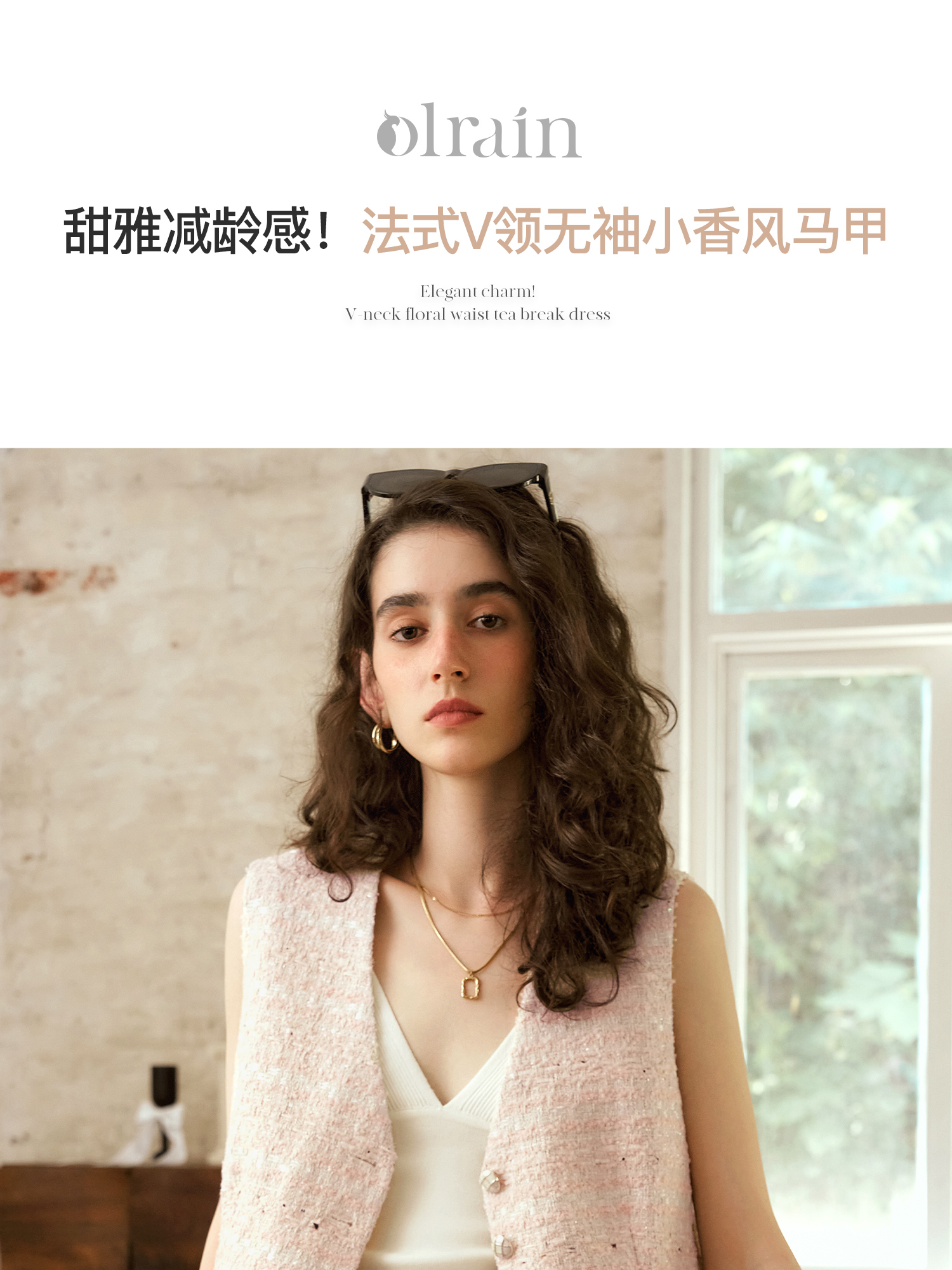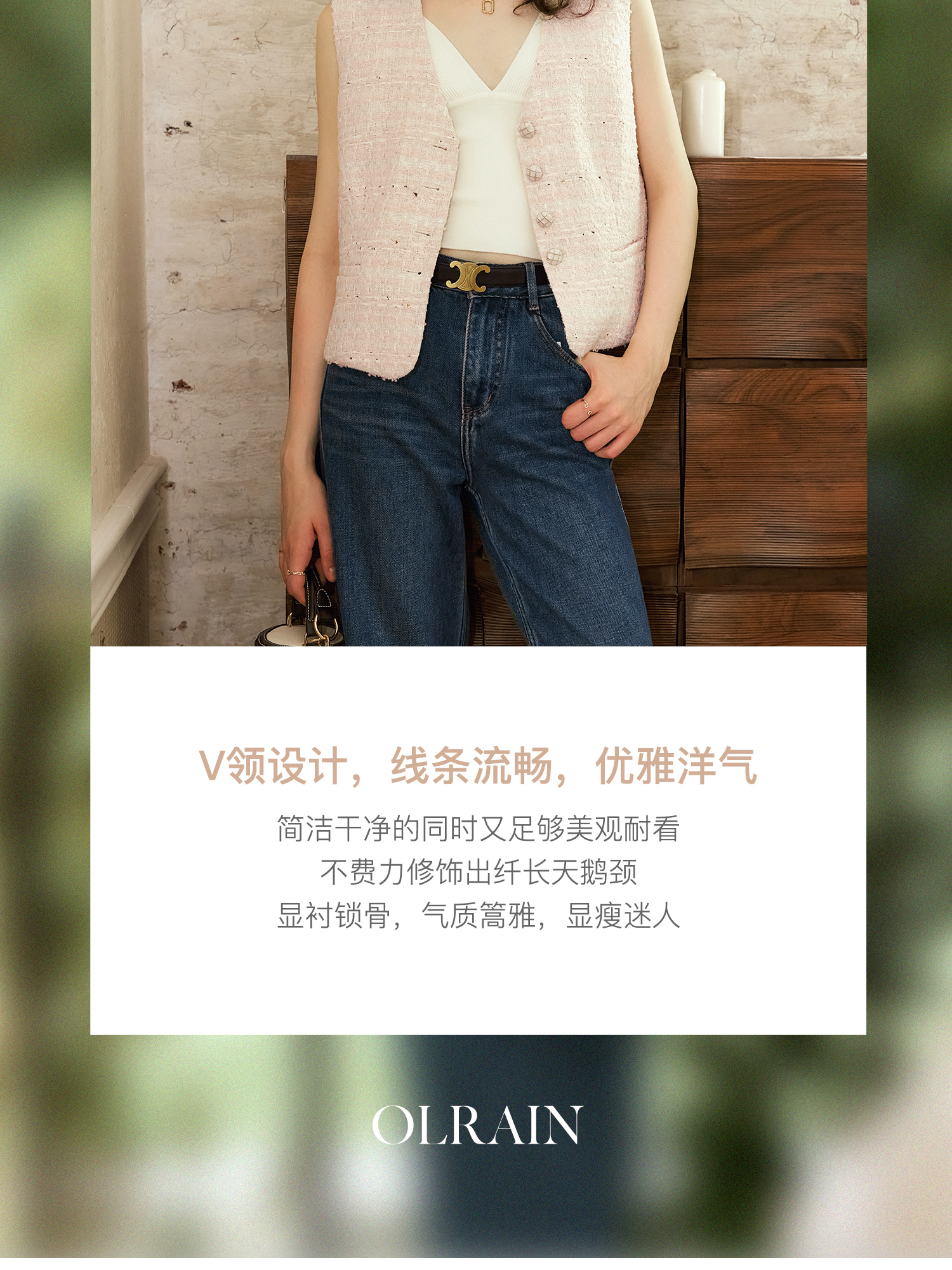 OLrain欧芮儿法式小香风马甲女秋季2024年新款优雅V领无袖上衣