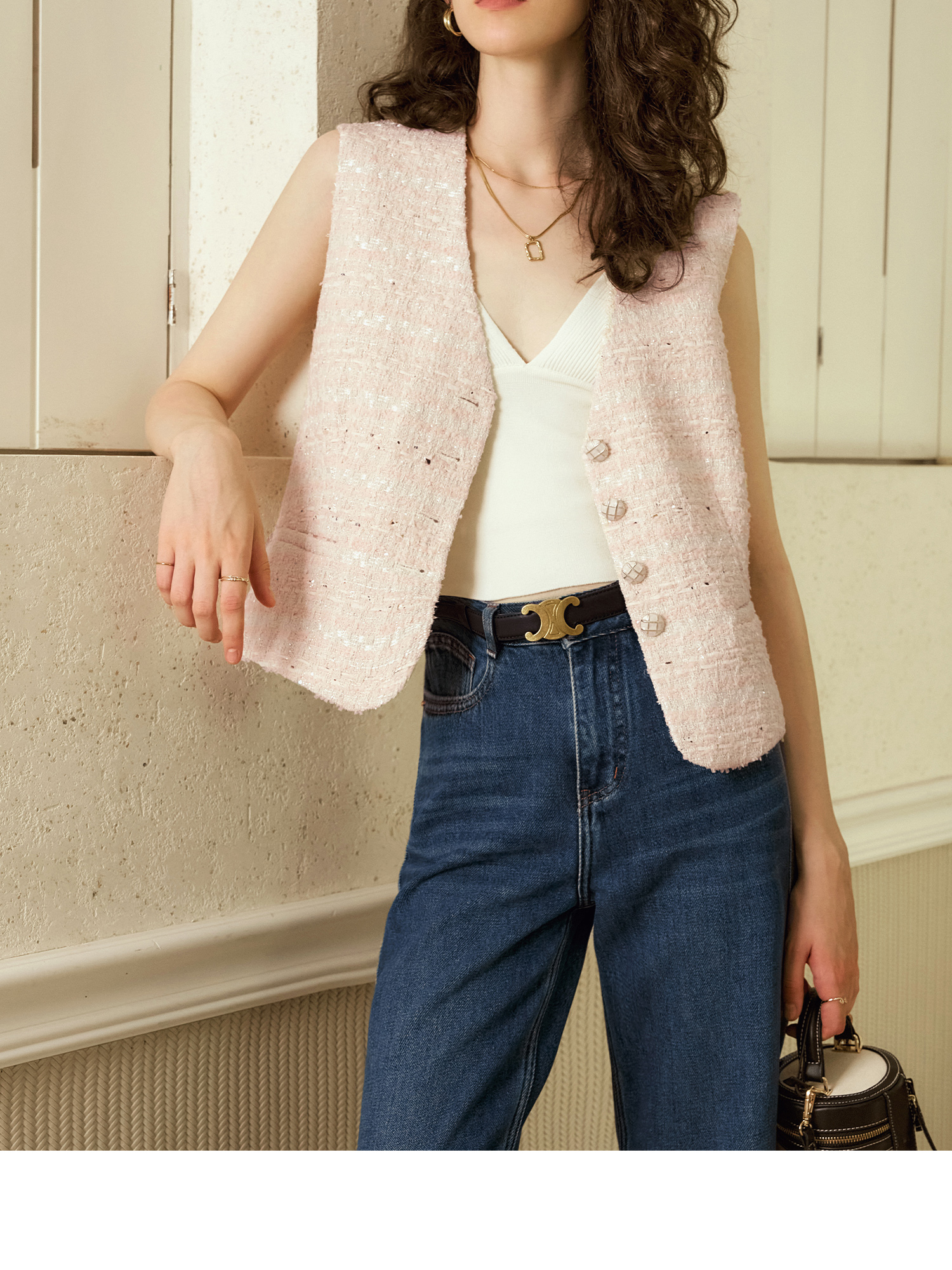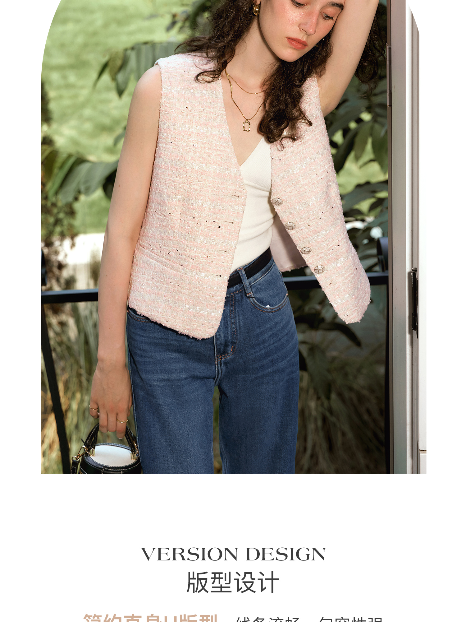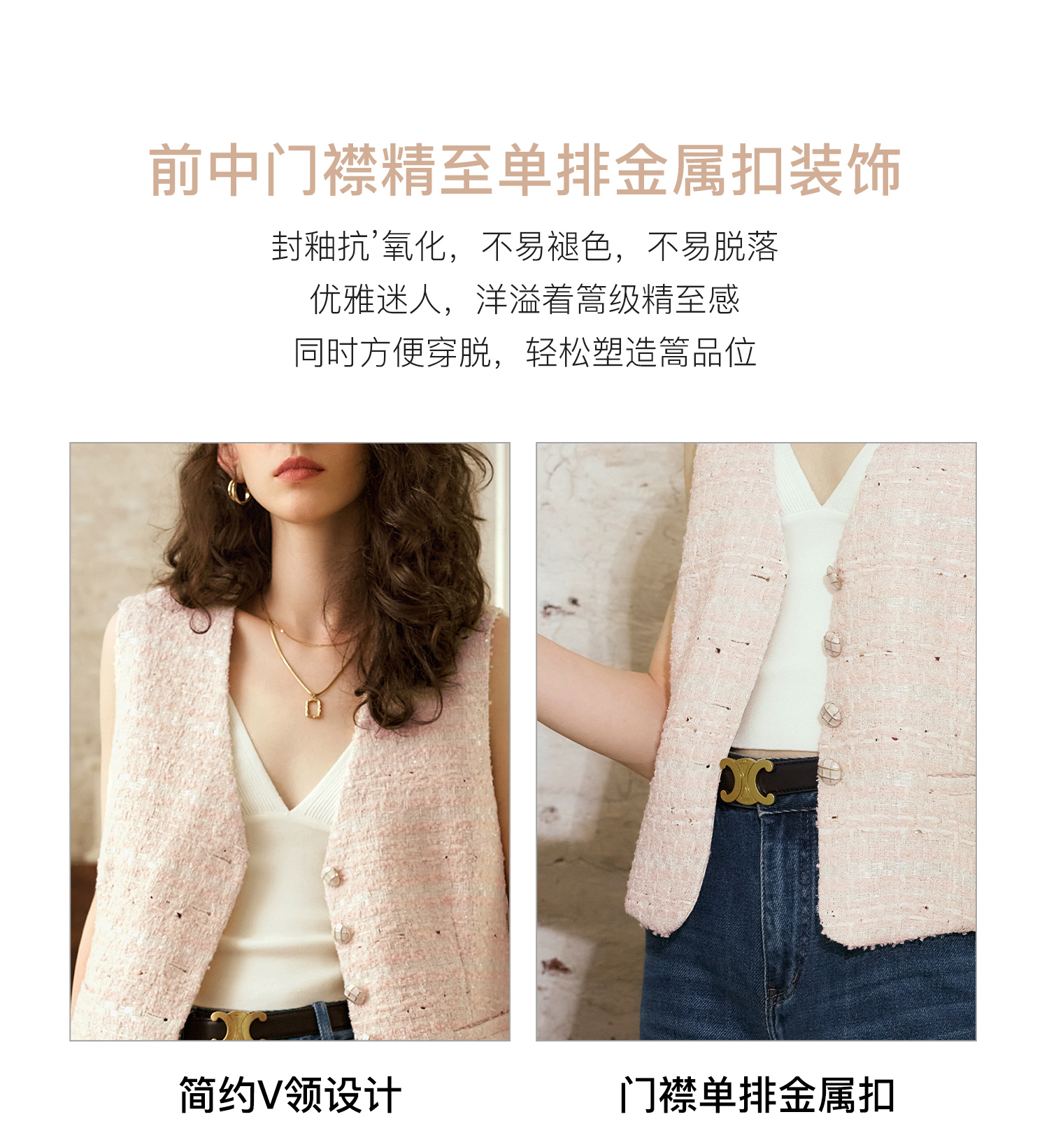 OLrain欧芮儿法式小香风马甲女秋季2024年新款优雅V领无袖上衣