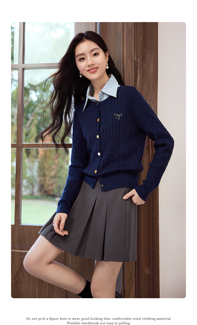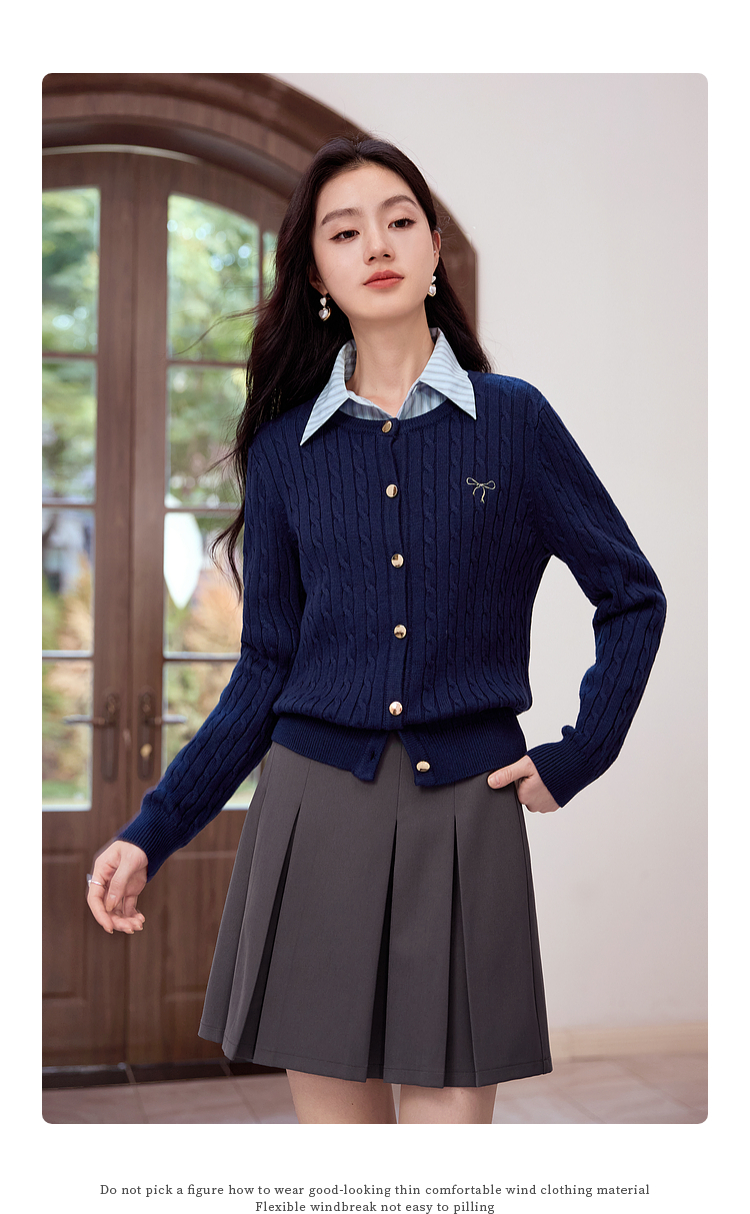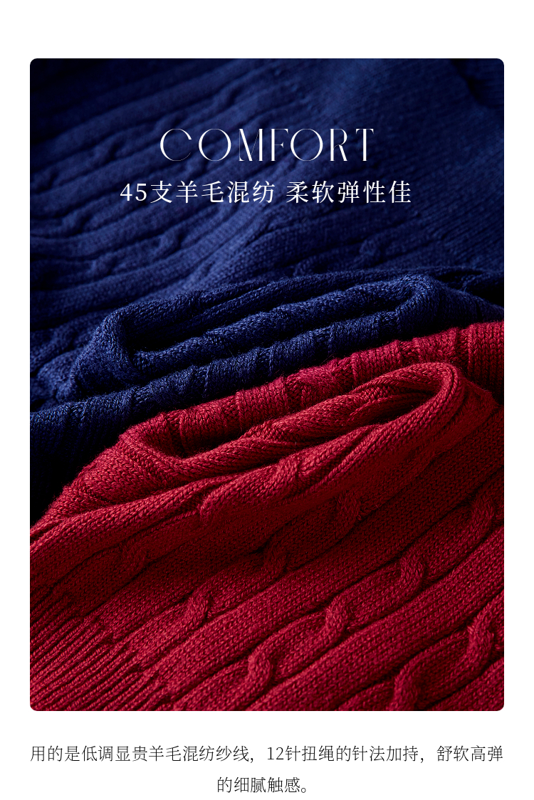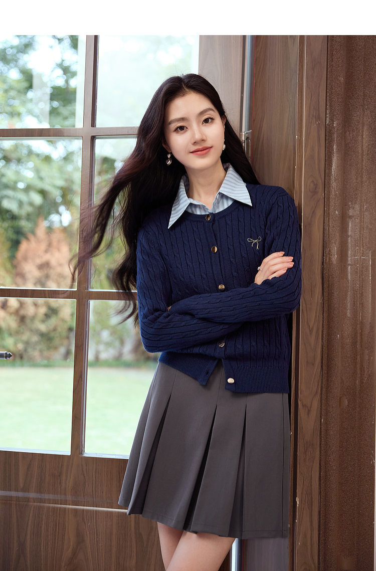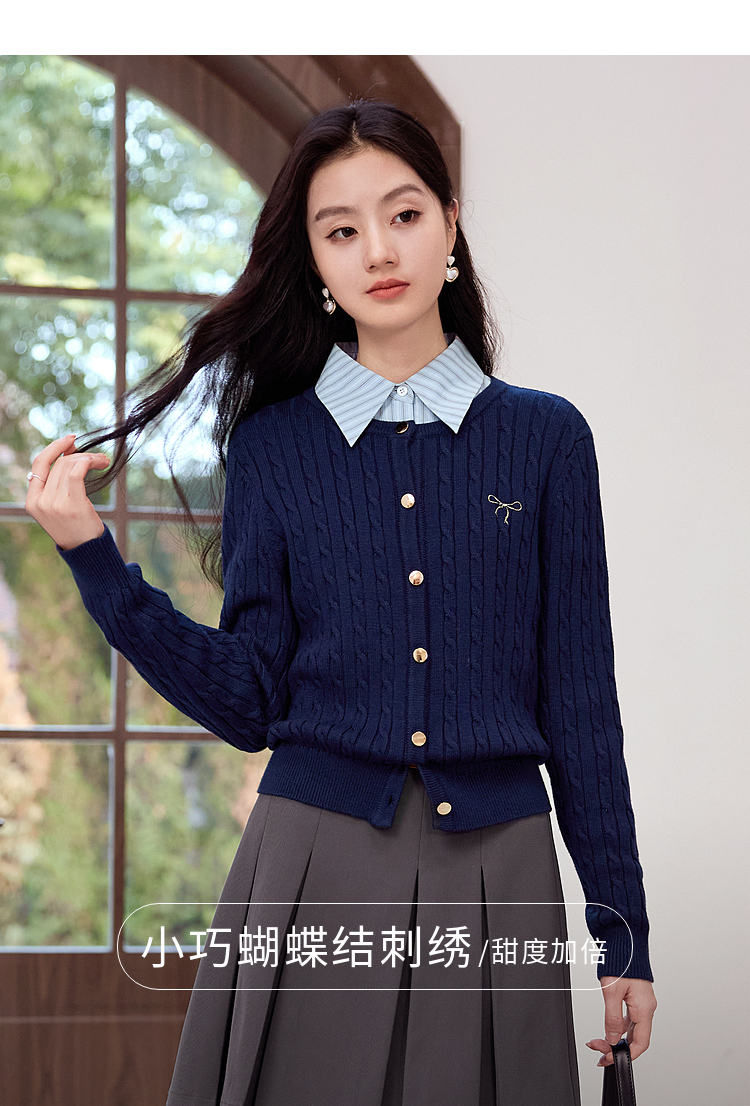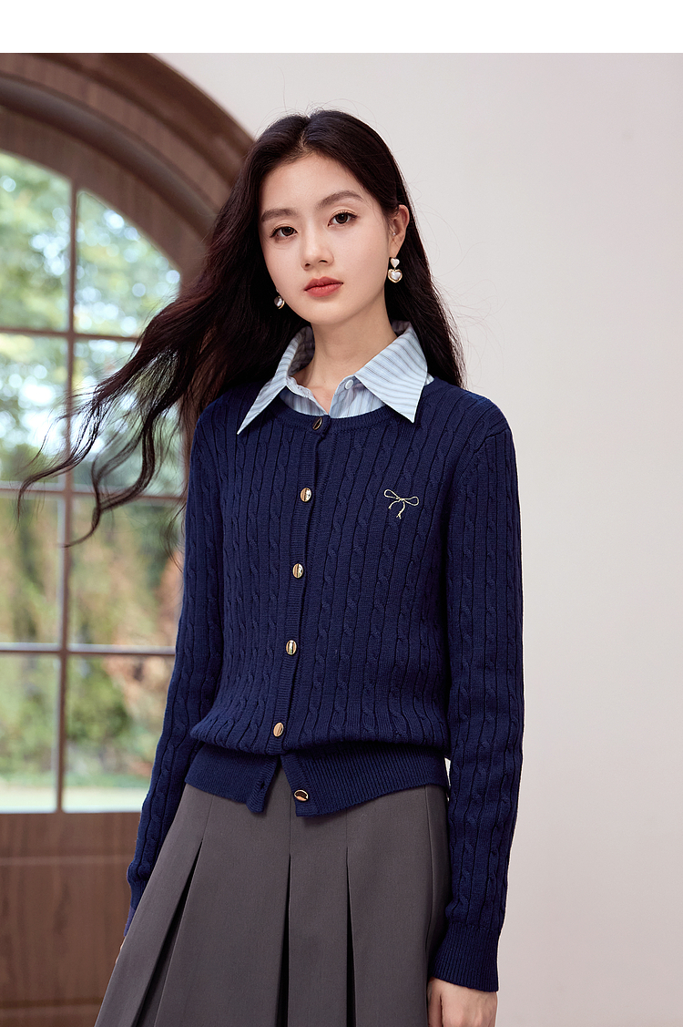 【年终特卖】熙世界学院风复古红色针织外套短款圆领麻花毛衣开衫2025秋新款