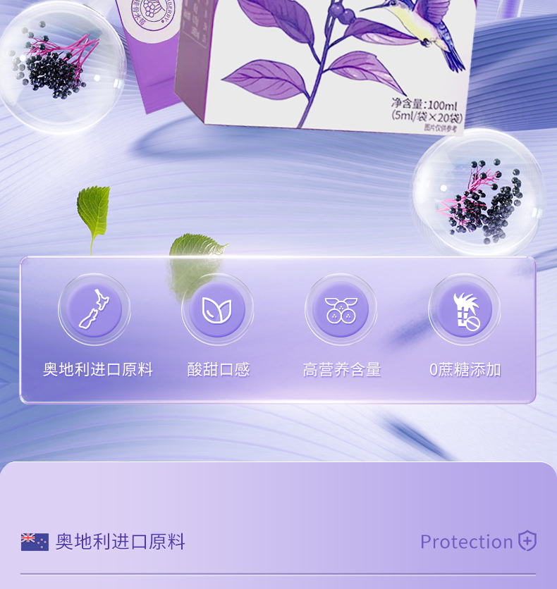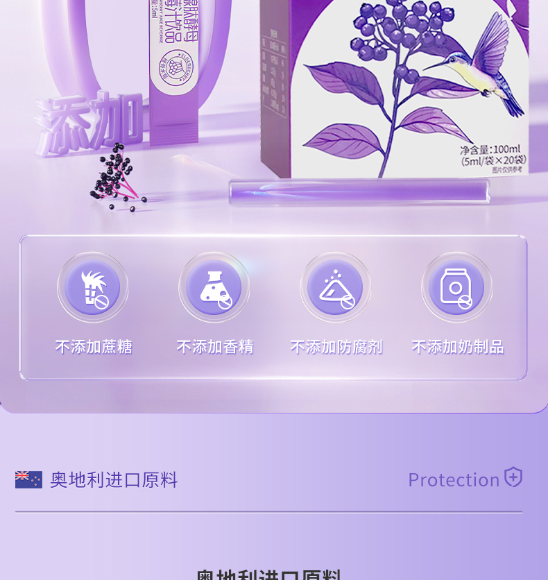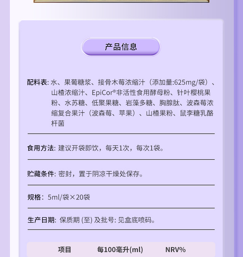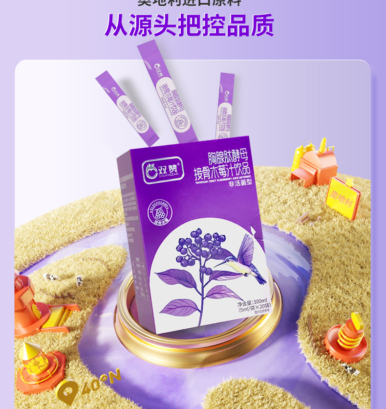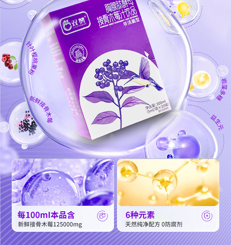 双赞胸腺肽酵母接骨木莓汁饮品100ml(5ml*20袋)