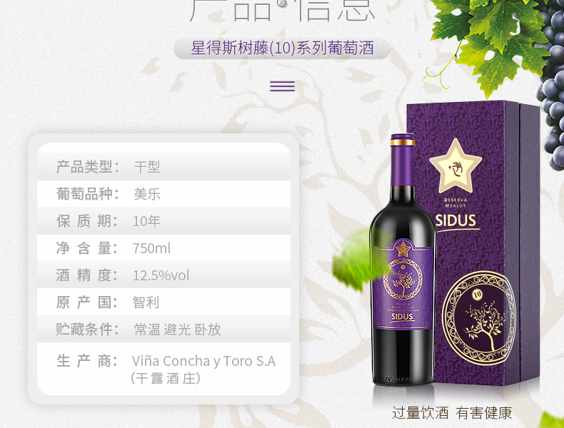 智利星得斯树藤(10)红葡萄酒750ml*单支装