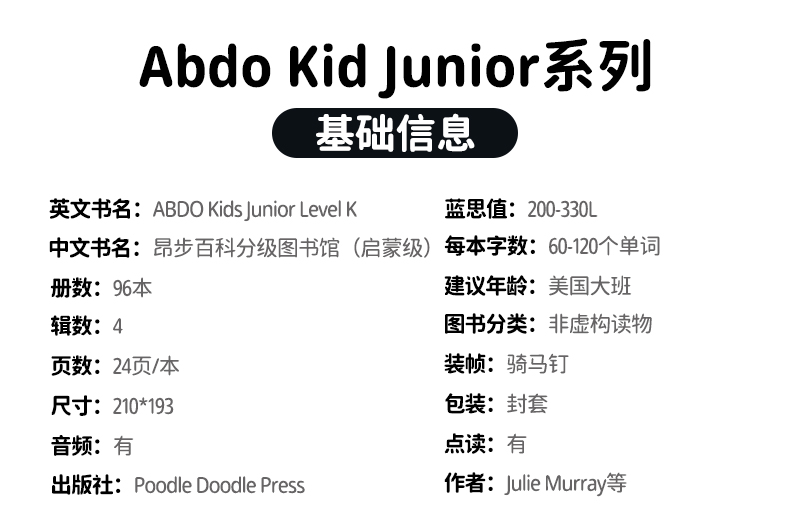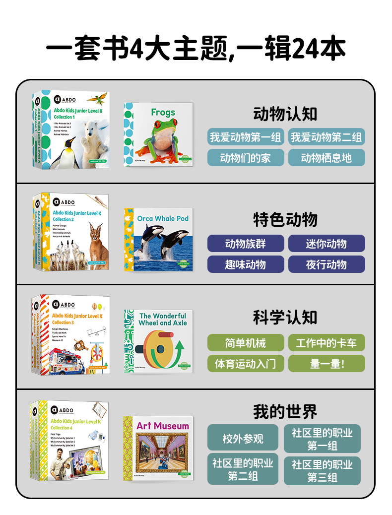 【盖世童书】ABDO昂步百科分级图书馆 - 启蒙级 第1~4辑(全辑共96本)