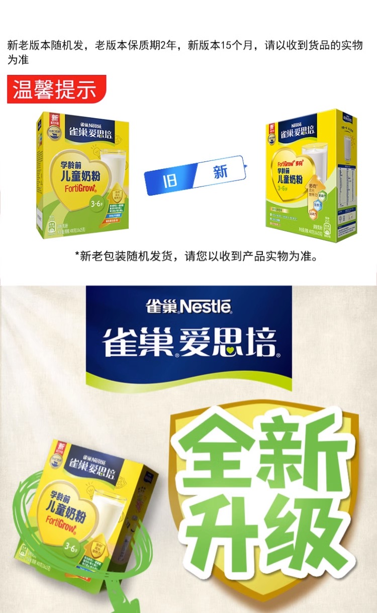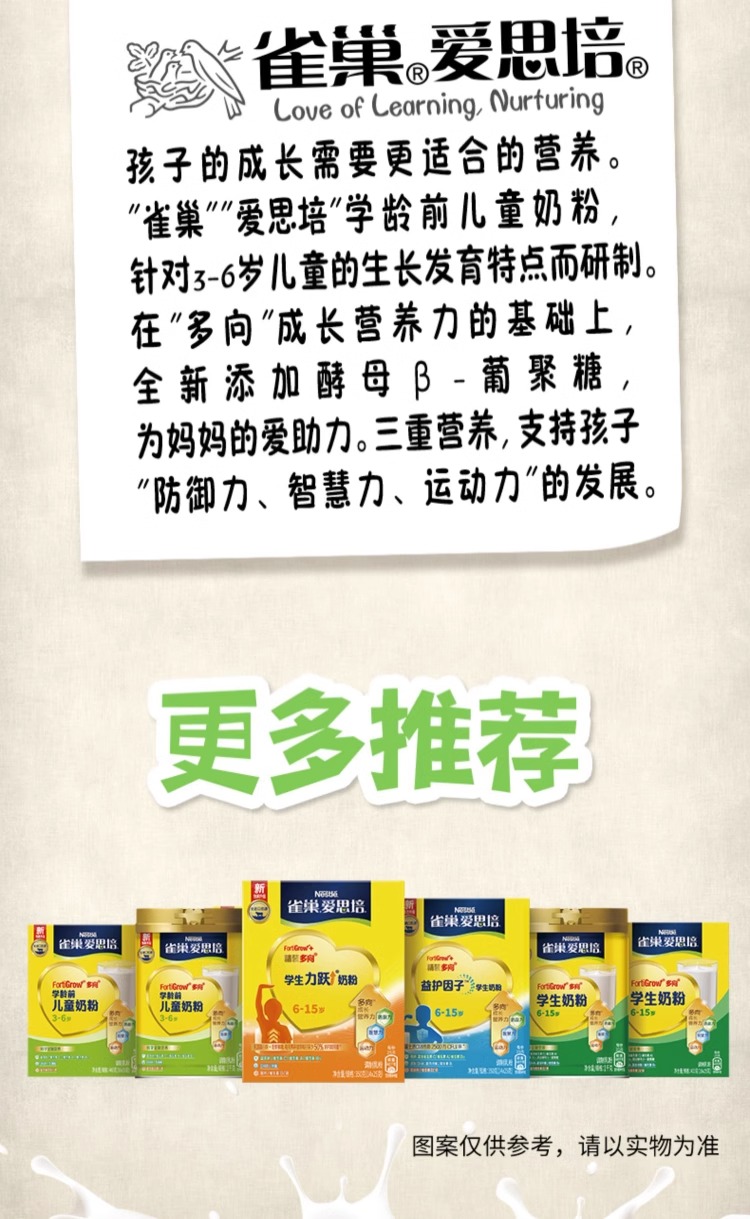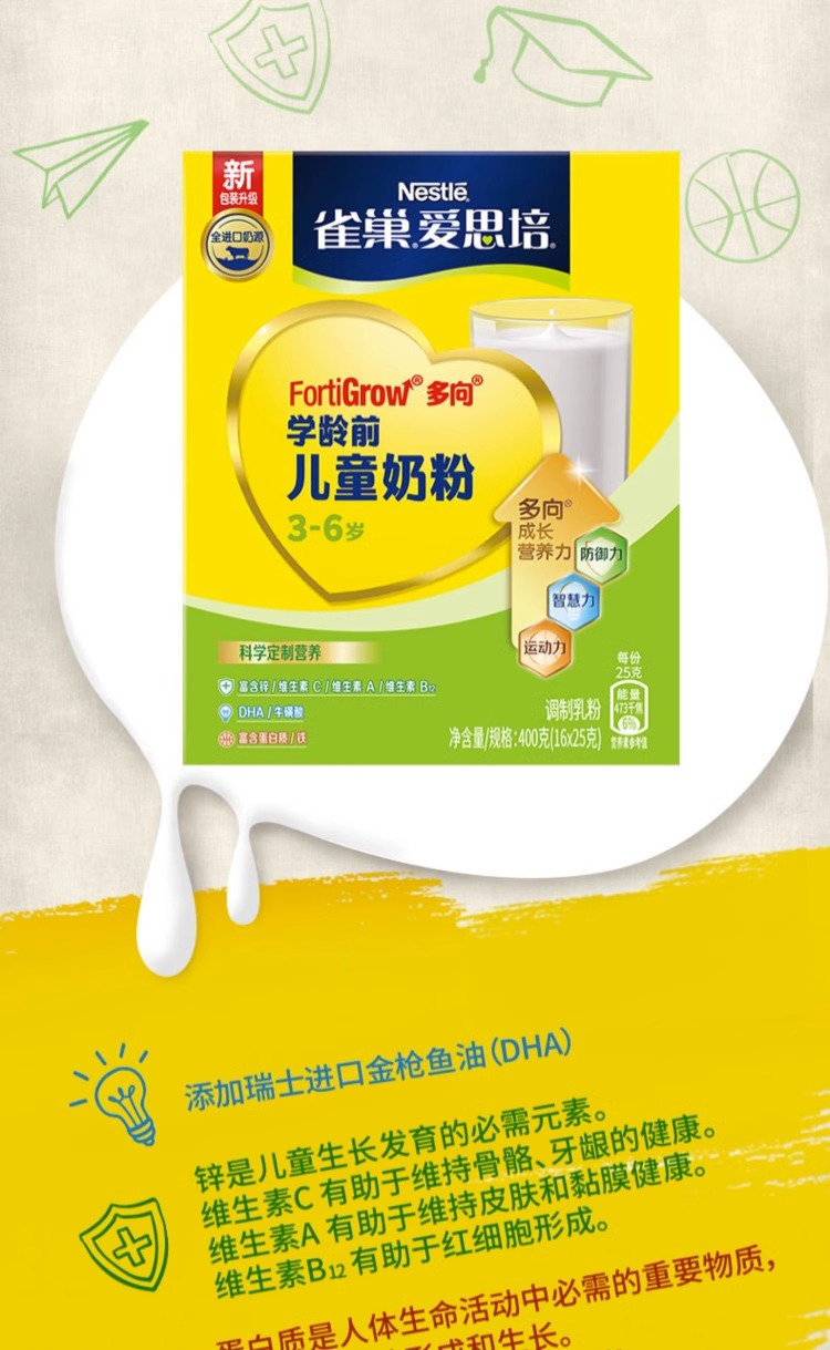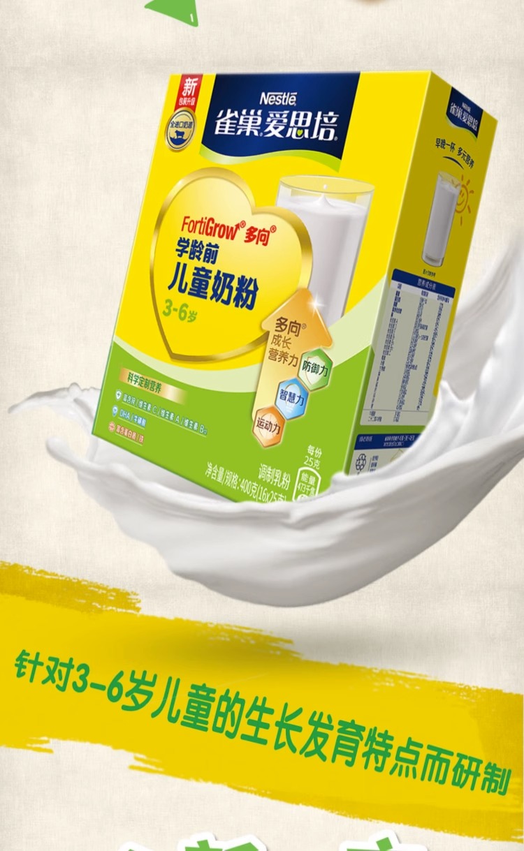 雀巢爱思培3+学龄前儿童奶粉盒装 (16x25g)*2盒