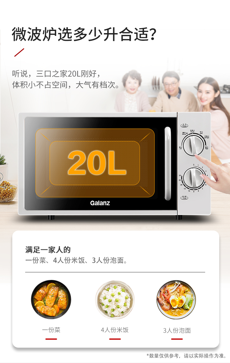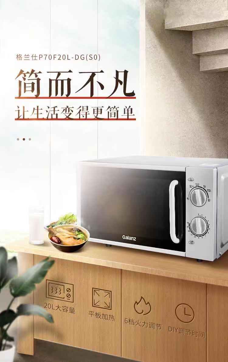 格兰仕微波炉 20升700W 平板加热 6档火力 机械旋钮 老人小孩都会用的微波P70F20L-DG(S0)