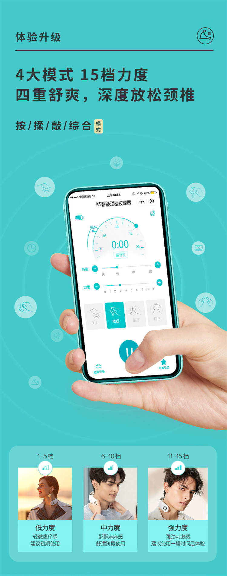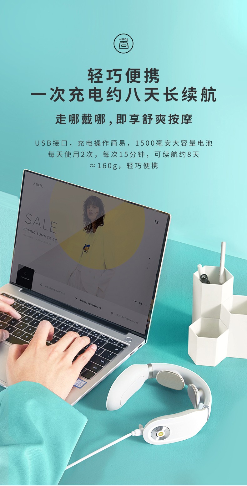SKG 颈椎按摩器 颈椎按摩仪 肩颈按摩器 颈椎经络电脉冲护颈仪 4098 蓝牙款 王一博代言