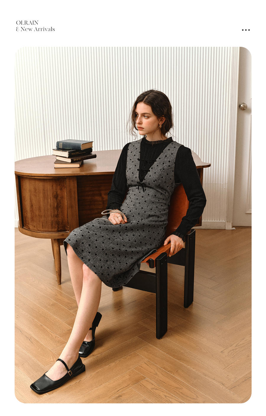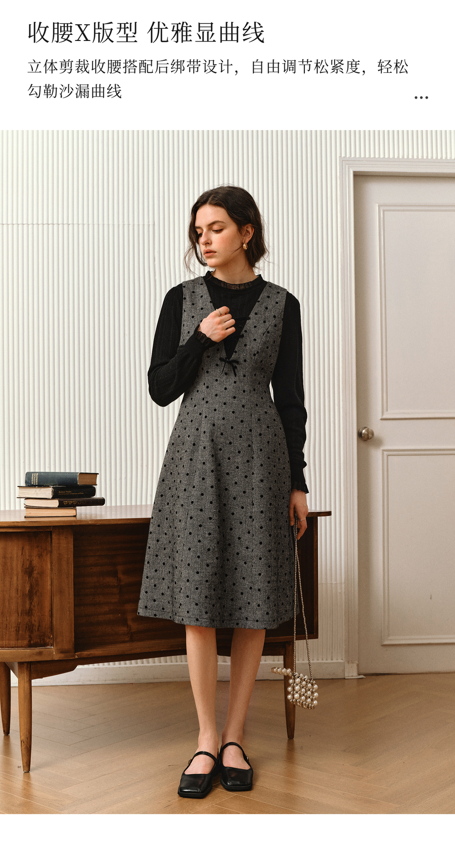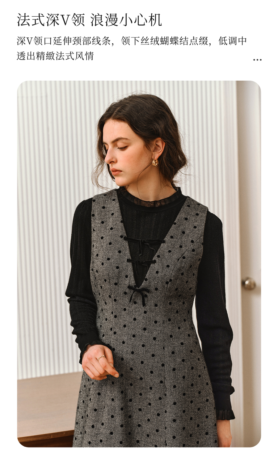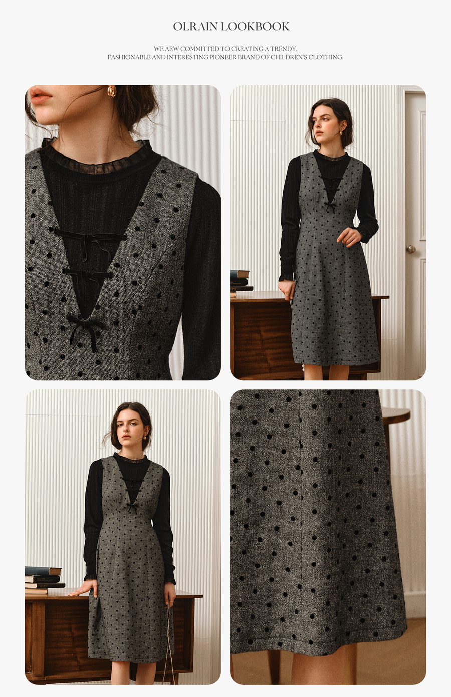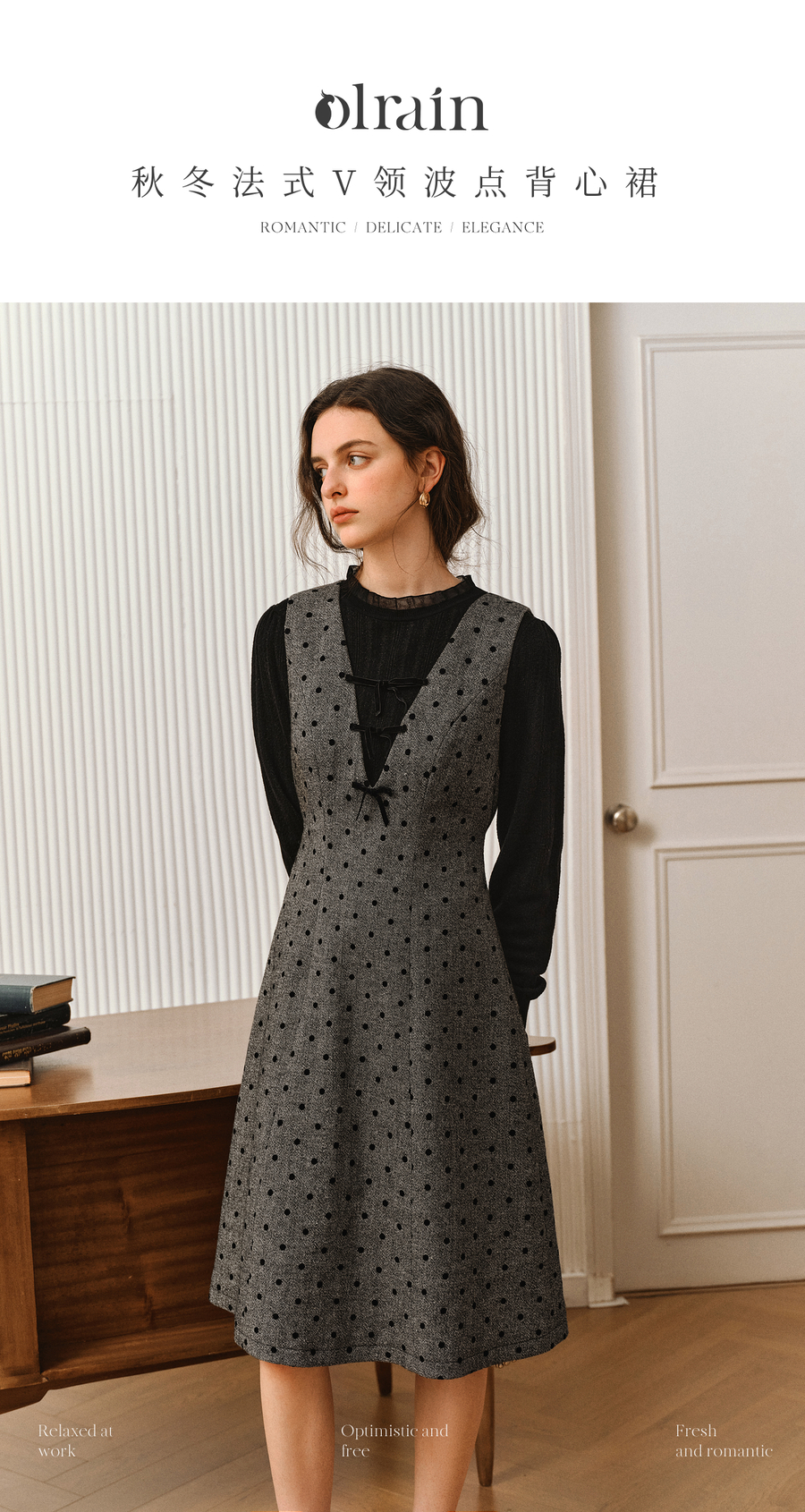OLrain欧芮儿2025新款女秋季秋冬法式V领浪漫小心机波点背心裙