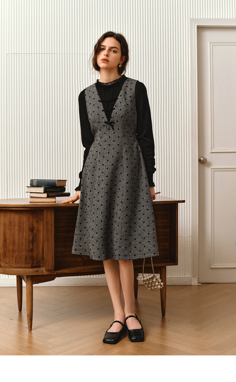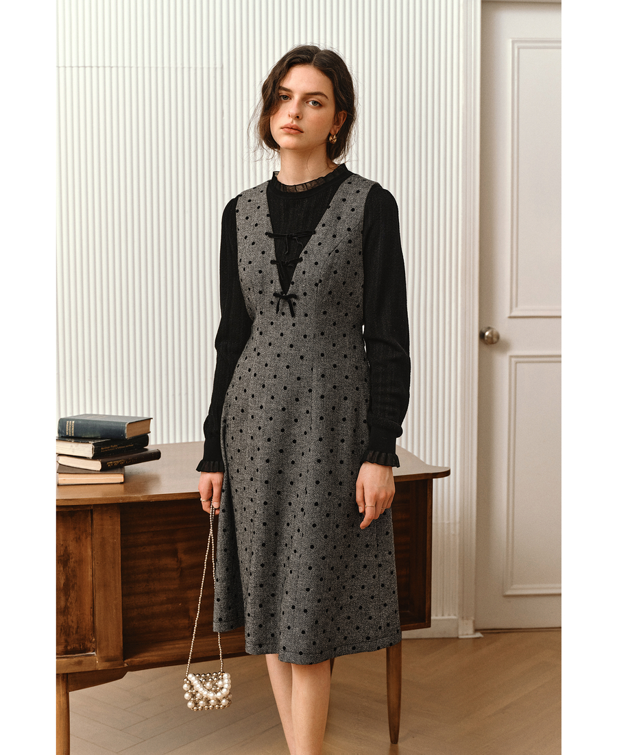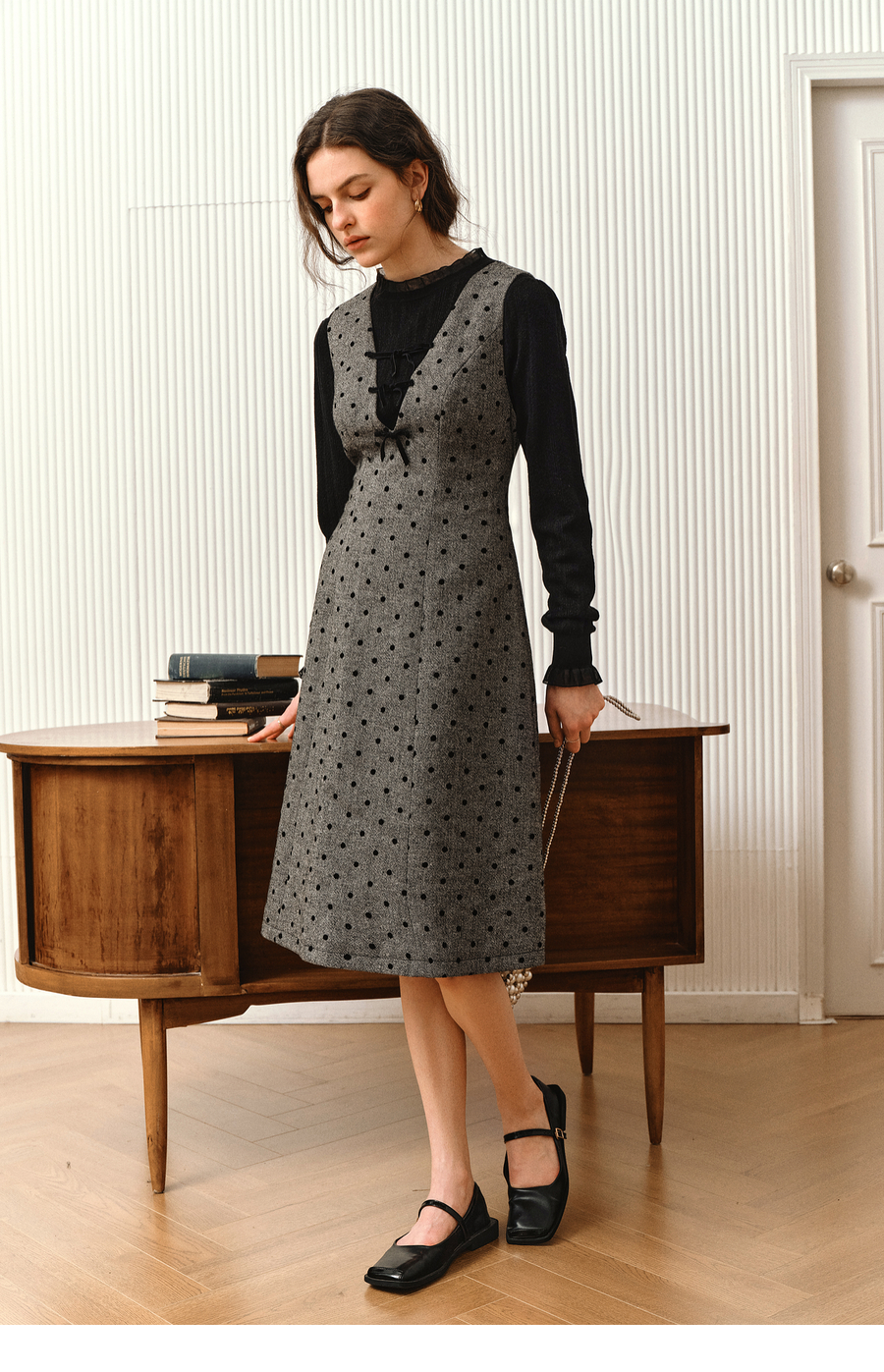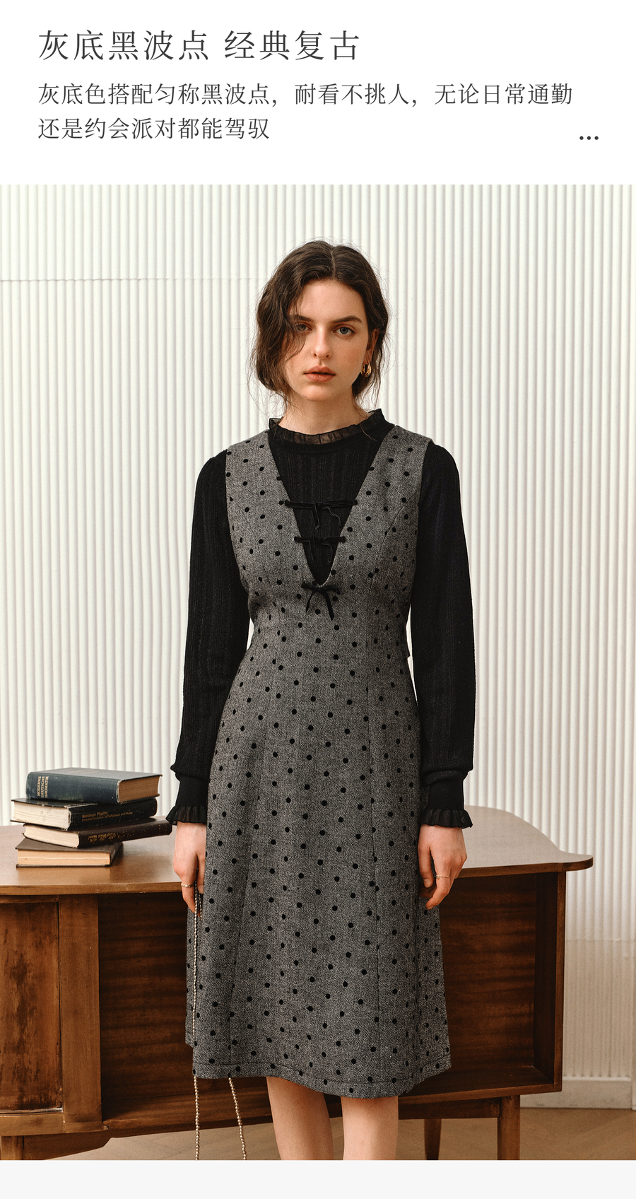 OLrain欧芮儿2025新款女秋季秋冬法式V领浪漫小心机波点背心裙