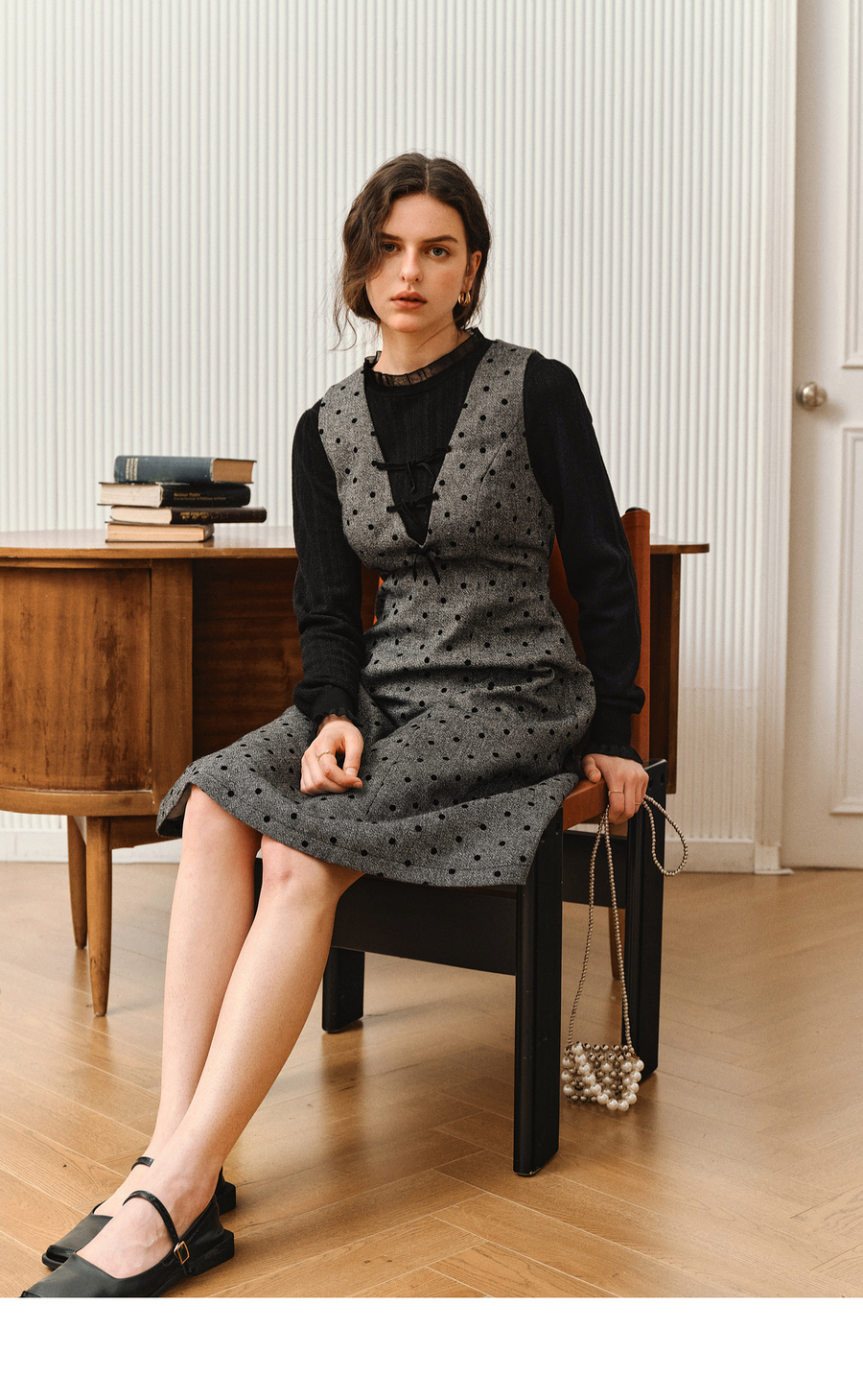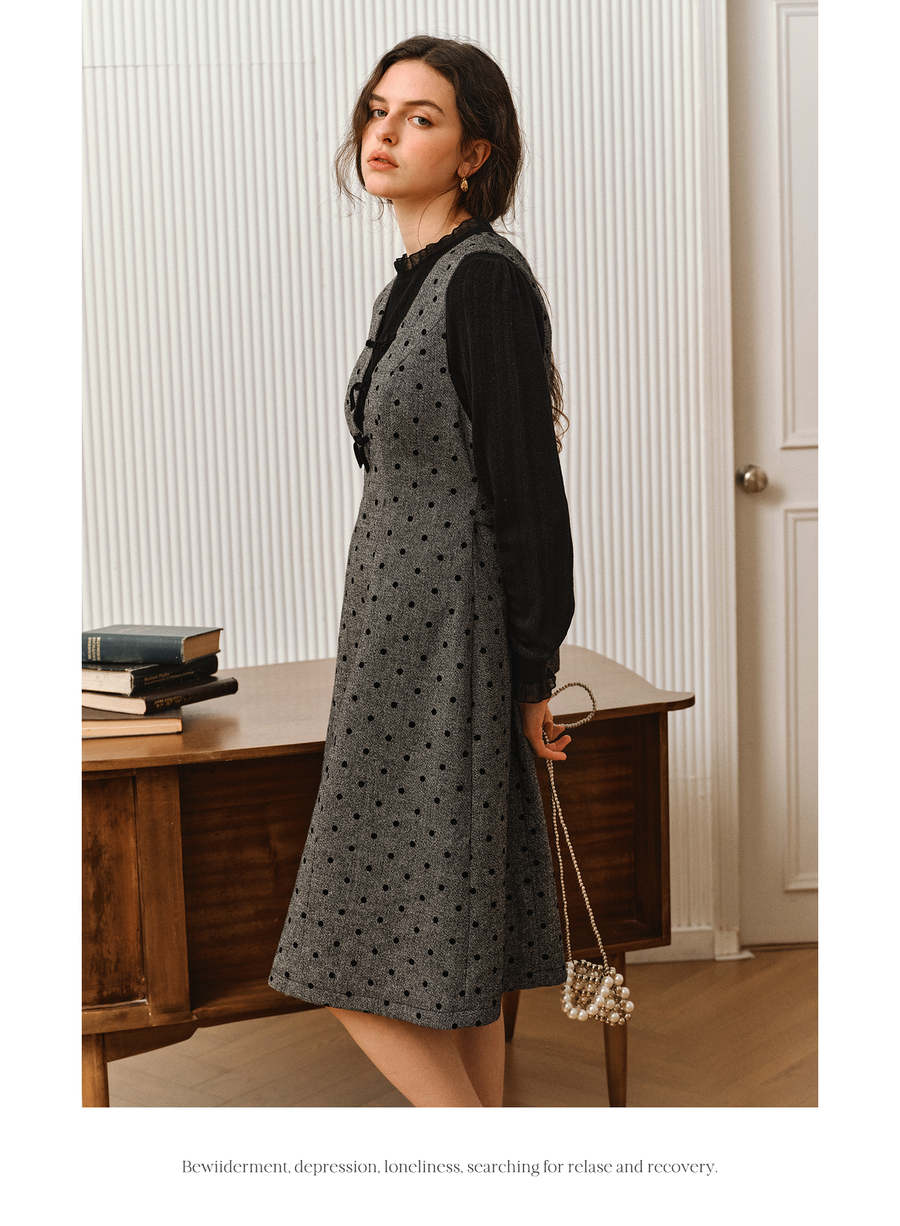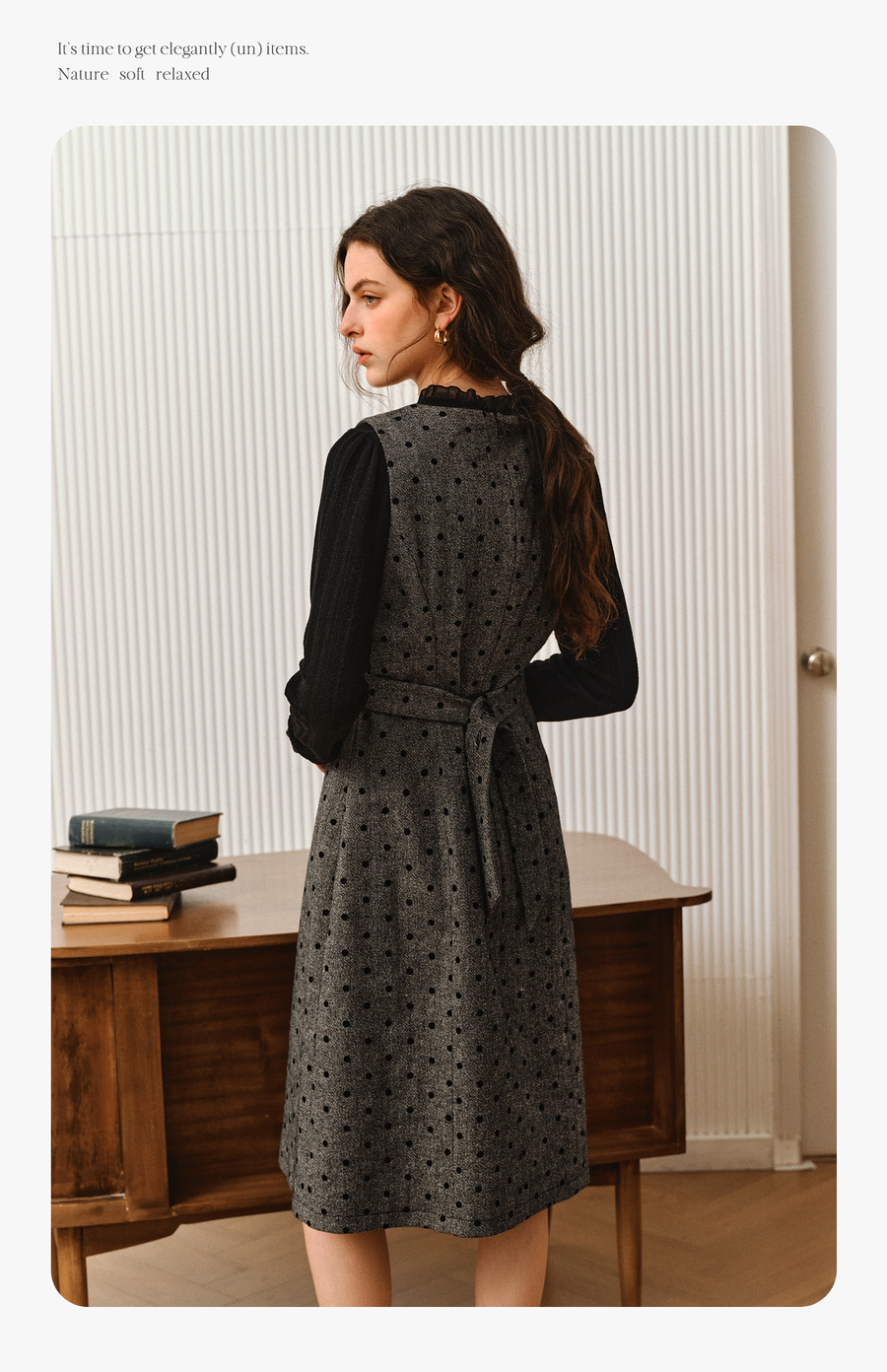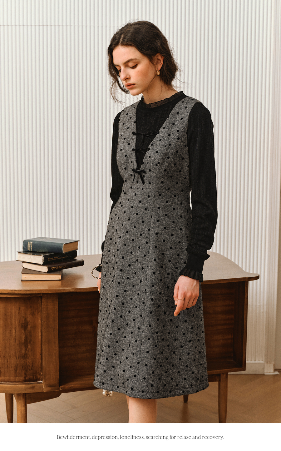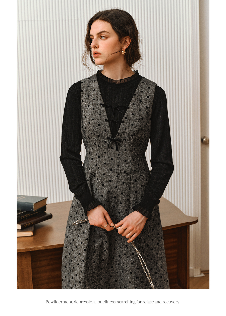 OLrain欧芮儿2025新款女秋季秋冬法式V领浪漫小心机波点背心裙