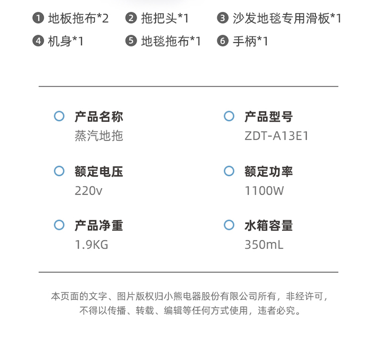 【分仓直发包邮】小熊蒸汽拖把ZDT-A13E1